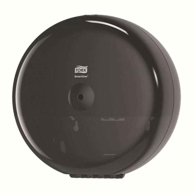 Держатель для туалетной бумаги с центральной вытяжкой Tork SmartOne Т8 в рул 680008 изготовлен из пластика черного цвета. Прочная конструкция с металлическим ключом и замком, что защищает рулон и предотвращает хищение бумаги. Размеры держателя (ВхШхГ): 269×156×269 мм.