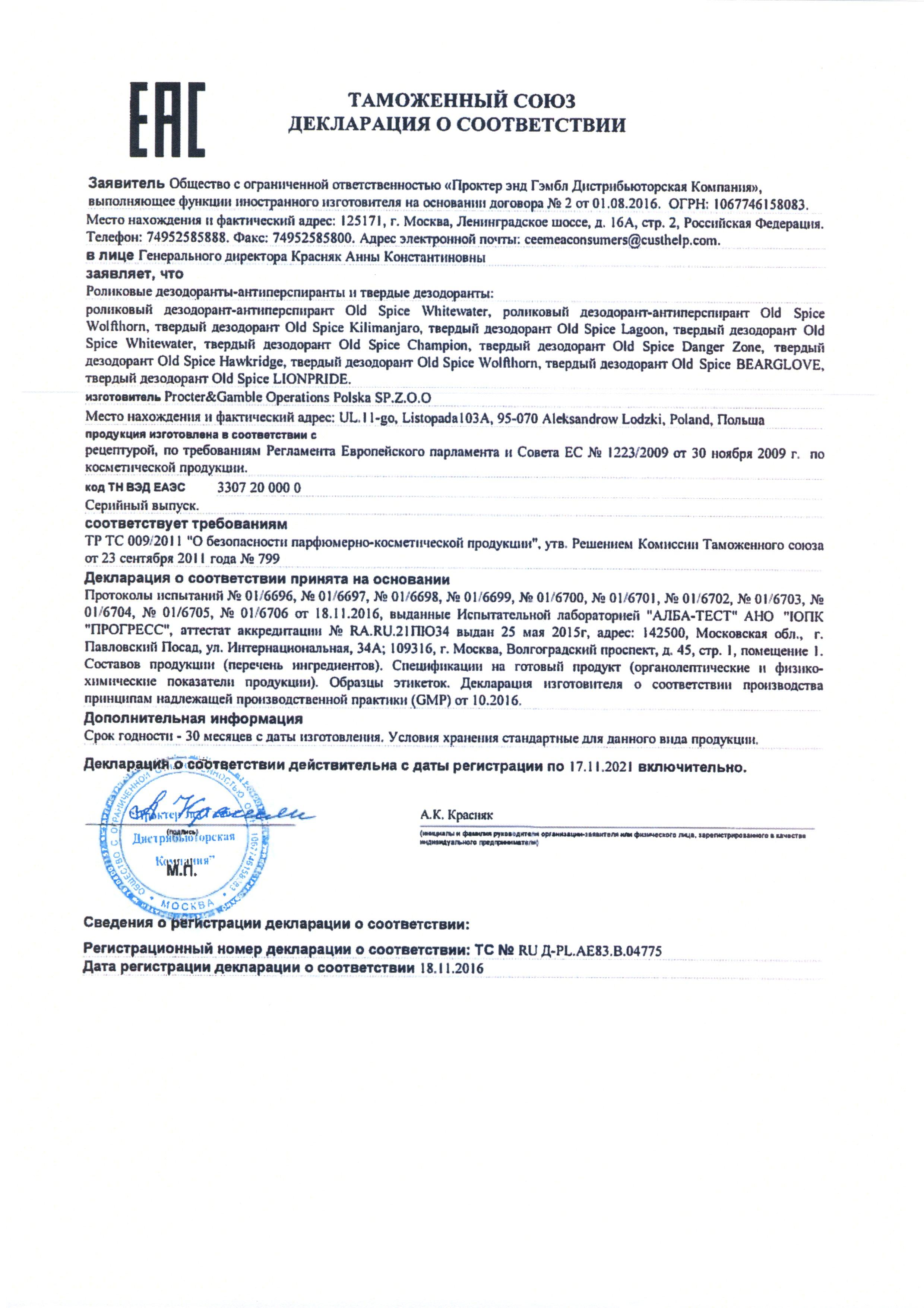 Сертификат на товар - Дезодорант-стик мужской Old Spice Wolfthorn 50 мл