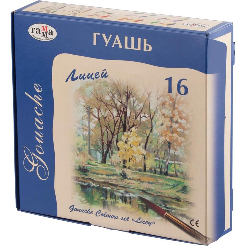 Гуашь 'Гамма. Лицей' предназначена для детского творчества, выполнения художественно-декоративных работ, оформительских работ. Краски изготовлены на основе натуральных компонентов и высококачественных пигментов. Обладают хорошей кроющей способностью и чистотой цвета. Гуашь находится в пластиковых герметичных баночках с завинчивающейся крышкой. В набор входит 16 цветов: белый, желтый, темно-желтый, оранжевый, алый, темно-красный, розовый, охра золотистая, темно-зеленый, бирюзовый, ультрамарин, темно-синий, фиолетовый, черный, коричневый, красно- фиолетовый. Краски упакованы в картонную коробку, размер упаковки (ДxШxВ): 158x153x 38 мм. Объем одной баночки - 20 мл. Поставляется без кисти.