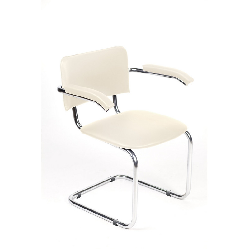 Конференц-стул Silwia Arm с сиденьем, спинкой и подлокотниками из искусственной кожи бежевого цвета. Эргономичный каркас выполнен из хромированного металла, есть накладки для сохранности напольного покрытия. Максимальная статическая нагрузка - 100 кг.Изображения товаров на сайте не могут гарантировать точную цветопередачу.