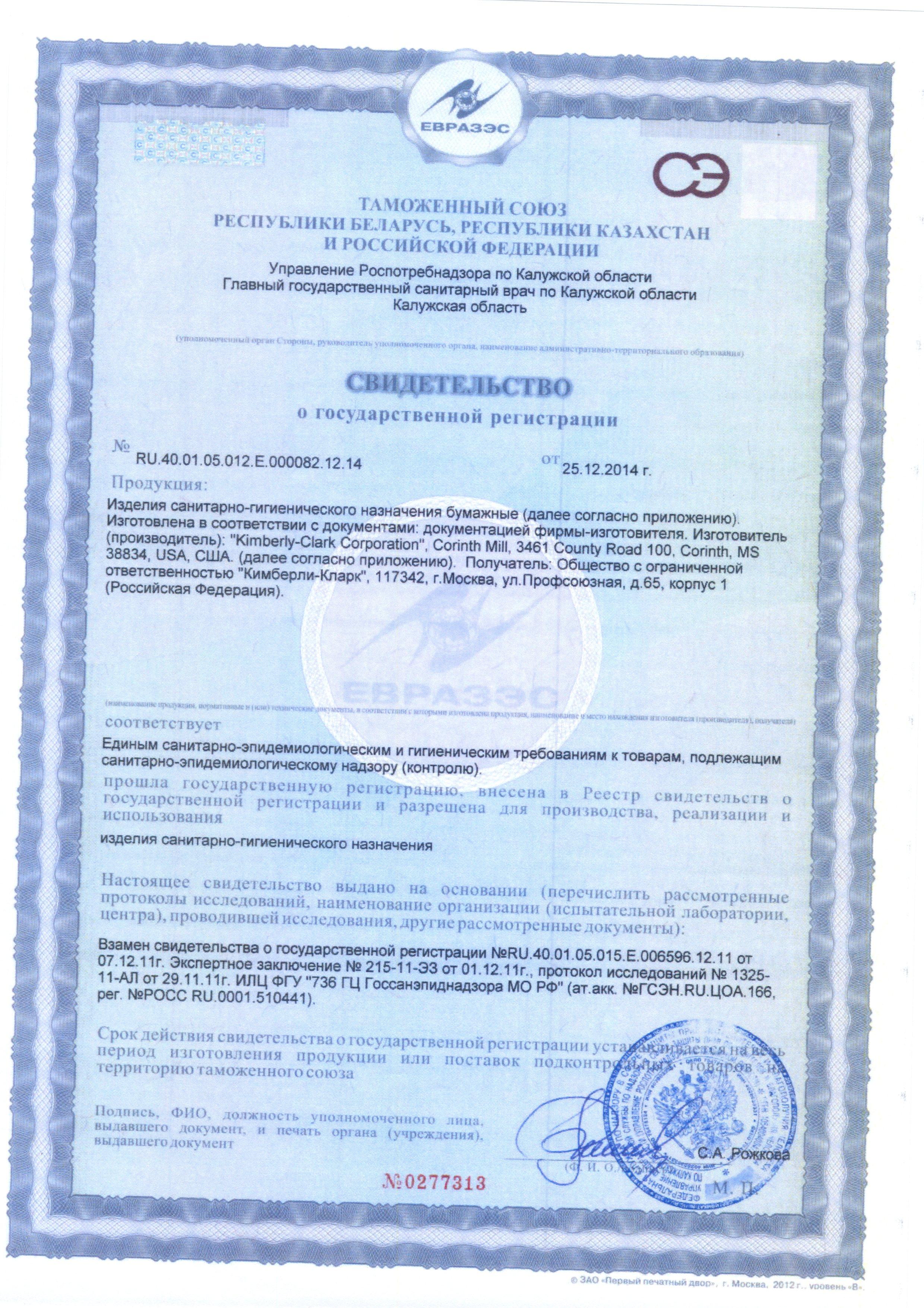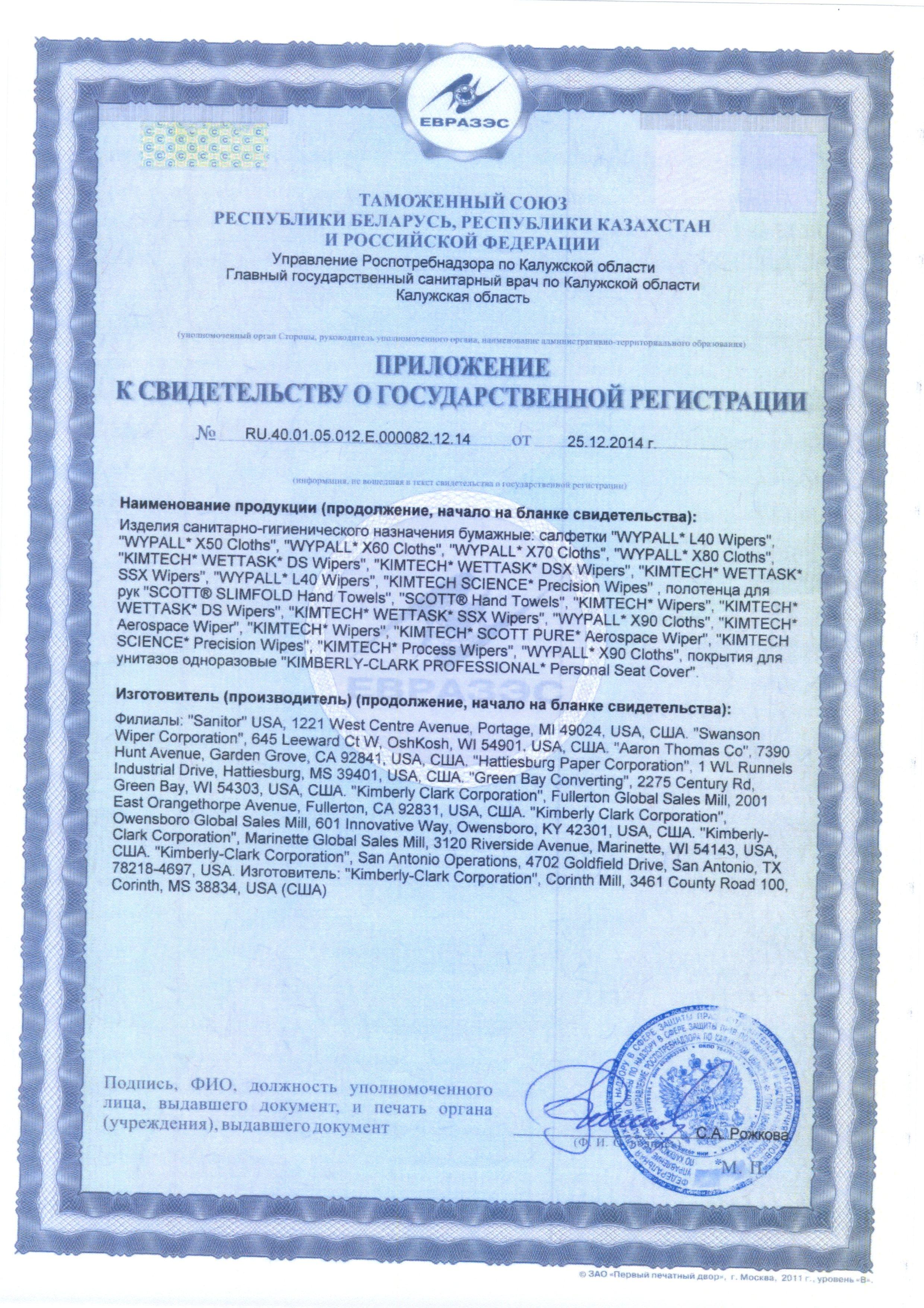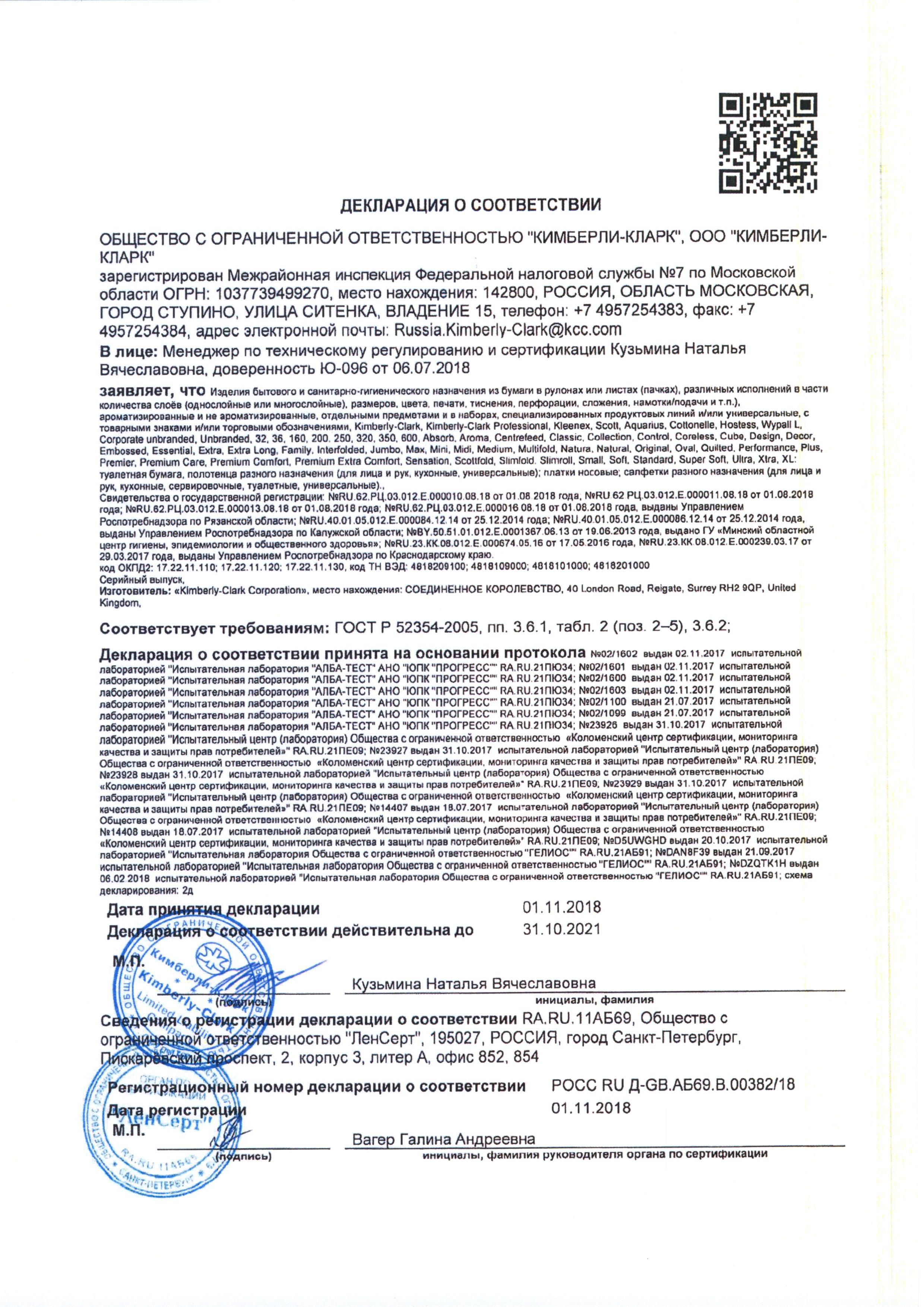 Сертификат на товар - Полотенца бумажные листовые Kimberly Clark Kleenex Interfold Z-сложения 2-слойные 15 пачек по 186 листов (артикул производителя 6789)