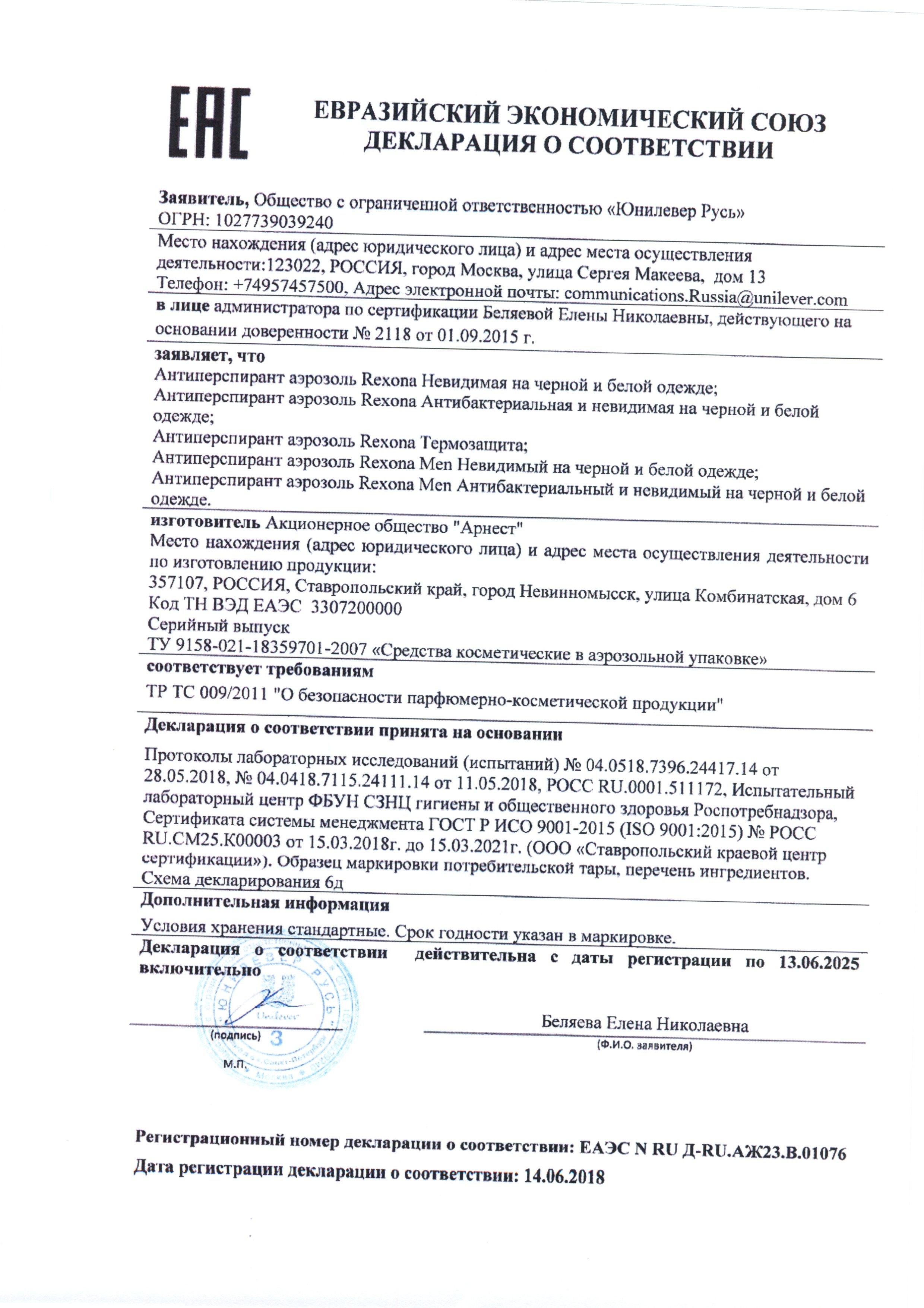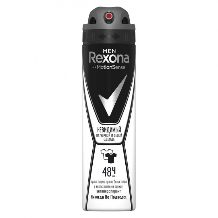 Лучшая невидимая защита против белых и желтых следов. 48 часов защиты от пота и запаха. Новая уникальная формула антиперспиранта Rexona man бескомпромиссно обеспечивает надежную защиту от пота и неприятного запаха, а также предотвращает появление белых следов на черном и желтых пятен на белом.