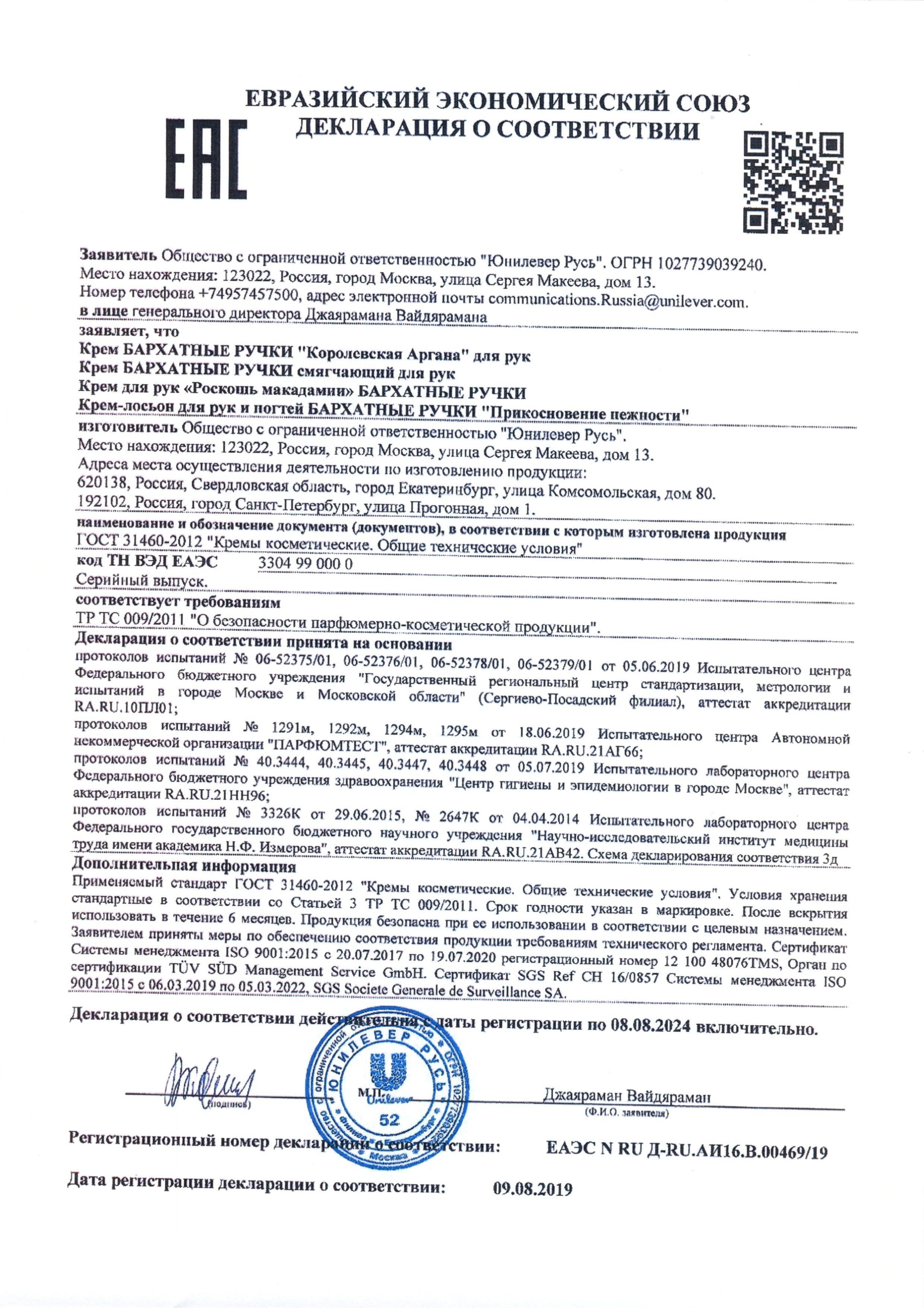 Крем для рук Бархатные ручки Королевская аргана 80 мл. Масло Арганы — одно из самых ценных и эффективных масел в мире — его называют «жидким золотом»! Входящие в состав масла незаменимые омега-кислоты превосходно питают кожу! Благодаря высокой концентрации антиоксидантов в масле, крем продлевает молодость кожи рук. Не содержит искусственных красителей.Способ применения: наносите на чистую сухую кожу, легко массируя до полного впитывания. Используйте по мере необходимости.Состав: Aqua, Urea, Dimethicone, Cetearyl Alcohol, Butyrospermum Parkii (Shea Butter), Vitis Vinifera (Grape) Seed Oil, Polyglyceryl-3 Methylglucose Distearate, Cyclopentasiloxane, Isopropyl Myristate, Argania Spinosa Kernel Oil, Glyceryl Stearate Citrate, Acrylates/C10-30 Alkyl Acrylate Crosspolymer, Allantoin, Disodium EDTA, Ethylparaben, Methylparaben, Mica, Niacinamide, Parfum, PEG-40 Hydrogenated Castor Oil, Phenoxyethanol, Potassium Cetyl Phosphate, Propylparaben, Triethanolamine, Benzyl Salicylate, Geraniol, Hexyl Cinnamal, Limonene, Linalool, CI 77891.