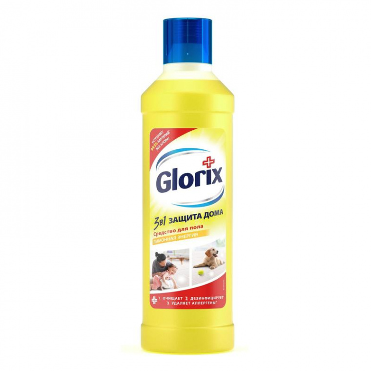 Все средства линейки Glorix для мытья пола очищают пол от грязи, обладают дезинфицирующим эффектом, устраняя 99.99% бактерий (в неразбавленном виде и в разбавленном в пропорции: 1 колпачок на 1 л. воды) без хлора и спирта, удаляют аллергены и болезнетворные микробы. Он подходит даже для антимикробной обработки детских игрушек! Моющие средства Glorix можно использовать для небольших поверхностей дома и всех видов покрытий: линолеума, паркета, искусственного камня, пластика и многих других.