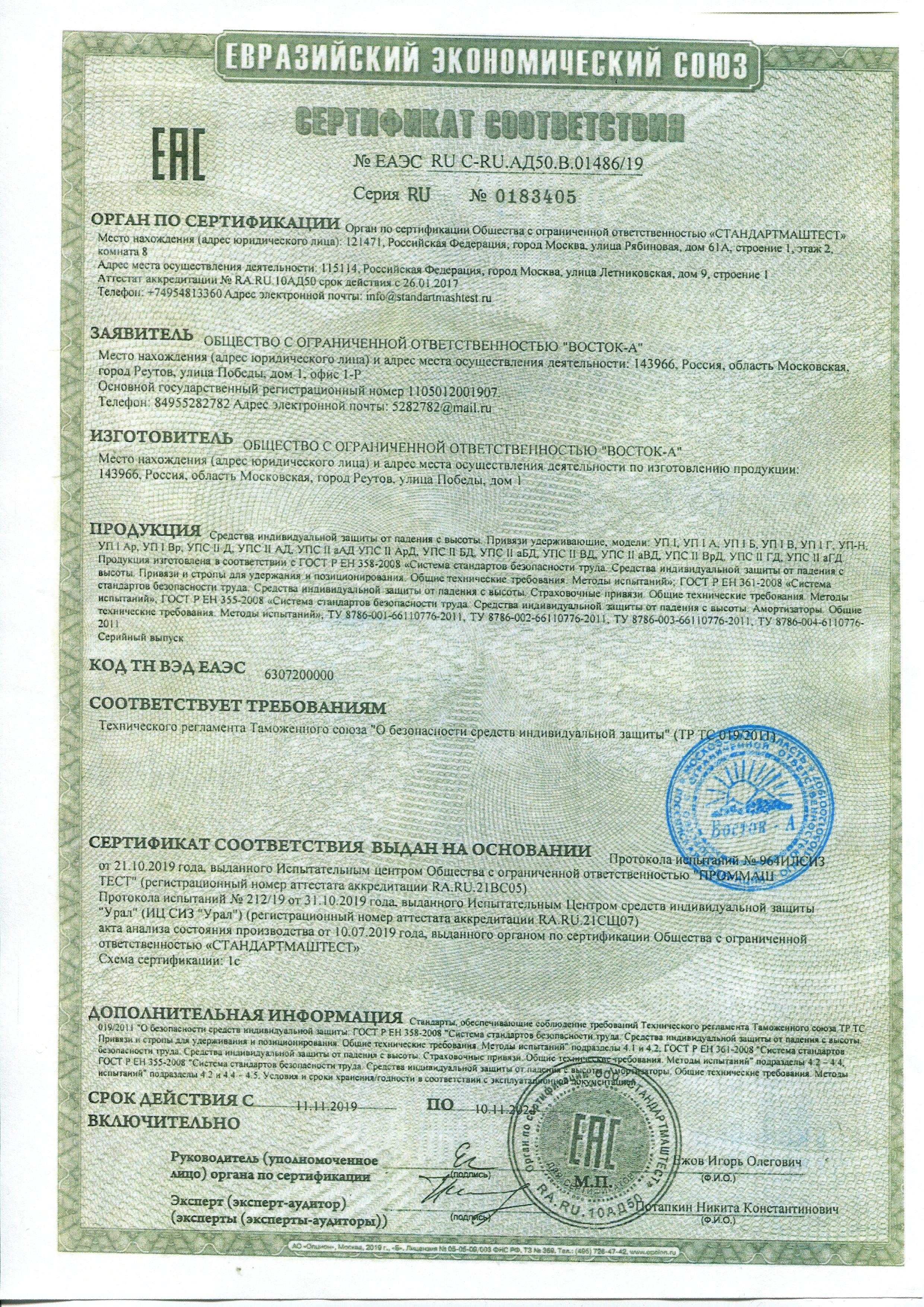 Предназначен для обеспечения безопасности работ на высоте, для выполнения функций удерживания и поддерживания, позиционирования на рабочем месте, ограничения перемещения в пространстве, включая предотвращение свободного падения.