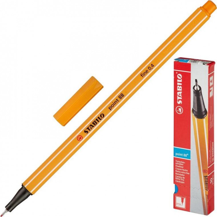Ручка-линер Stabilo Point в пластиковом корпусе желтого цвета с колпачком и износостойким наконечником. Чернила оранжевого цвета на водной основе обеспечивают четкие, тонкие и яркие линии, не просачиваясь сквозь бумагу. Толщина линии — 0,4 мм. Линер оптимален для черчения и графических работ, не требует усилий при работе. Не оставляет следов на линейках и трафаретах благодаря металлическому стержню. Возможности смены стержня нет.