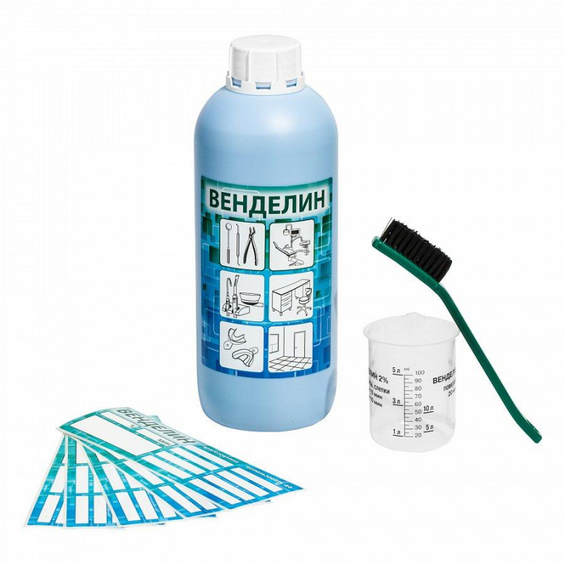 Дезинфицирующее средство 'Венделин' 1 л (концентрат). Химический состав дезсредства: ЧАС, гуанидин, поверхностно-активные вещества (ПАВ). Действующие вещества: алкилдиметилбензиламмоний хлорид (АДБАХ) + дидецилдиметиламмоний хлорид 11 %, полигексаметиленбигуанидин гидрохлорид 1 %, ПАВы. Сфера применения: акушерские стационары, лпу, клинические лаборатории, бактериологические лаборатории, детские учреждения (детсады, школы и т.п.), пенитенциарные учреждения, инфекционные очаги, предприятия общественного питания, предприятия продовольственной торговли, потребительские рынки, коммунальные объекты (бани, бассейны, гостиницы, общественные туалеты и т.п.), учреждения соцобеспечения, парикмахерские, косметические и (или) массажные салоны, прачечные, санитарный транспорт, отделения неонатологии, диагностические лаборатории. Объекты обработки: анестезиологическое оборудование, барокамеры, белье нательное, белье постельное, бытовые кондиционеры, вентиляционные фильтры, воздух в помещениях, воздуховоды, вращающиеся стоматологические инструменты, выделения больного (моча, фекалии, мокрота), гибкие эндоскопы, жесткая мебель, жесткие эндоскопы, жидкость после ополаскивания зева, игрушки, ИМН из металлов, резин на основе натурального и силиконового каучука, стекла, пластмасс, ИМН обычные, ИМН одноразовые перед утилизацией, инструменты к эндоскопам, инструменты парикмахерских, массажных, косметических салонов, инструменты стоматологические, инструменты хирургические, камеры для хранения стерильных ИМН, кровь, крышные кондиционеры, кувезы, лабораторная посуда, мед. отходы из текстильных материалов (ватные и марлевые тампоны, марля, бинты), мокрота, моча, мусоросборочное оборудование, мусоропроводы, мягкая мебель, наркозно-дыхательная аппаратура, обувь из пластика, резины, одноразовая посуда, плевательницы, поверхности в помещениях, поверхности приборов и аппаратов, предметы для мытья посуды, предметы личной гигиены, предметы обстановки, предметы ухода за больными, приспособления к кювезам, рвотные массы, резиновые и полипропиленовые коврики, санитарно-техническое оборудование, санитарный транспорт, системы вентиляции и кондиционирования воздуха, слюноотсосы, смывные воды, спецодежда, сплит-системы, мультизональные сплит-системы, спортивный инвентарь, стоматологические материалы (оттиски из альгината, силикона, полиэфирной смолы, зубопротезные заготовки, артикуляторы), стоматологические отсасывающие системы, транспорт для перевозки пищевых продуктов , уборочный инвентарь, фекалии. Класс опасности: при введении в желудок - 3; при нанесении на кожу - 4; рабочего раствора - 4. Активно в отношении: - бактерии (Mycobacterium tuberculosi, грамотрицательные бактерии, грамположительные бактерии, анаэробныe инфекции, возбудители ВБИ); - вирусы (аденовирусы, атипичной пневмонии, ВИЧ, герпеса, грипп, парагрипп, парентеральных гепатитов, полиомиелит, прочие возбудители ОРВИ, птичьего гриппа (H5N1), ротавирусы, свиной грипп (H1N1), энтеральных гепатитов, энтеровирусы); - патогенные грибы (дерматофитон, кандида, плесневые грибы). Срок годности: в упаковке - 5 лет, в рабочем растворе - 30 дней. Страна производства: Россия.