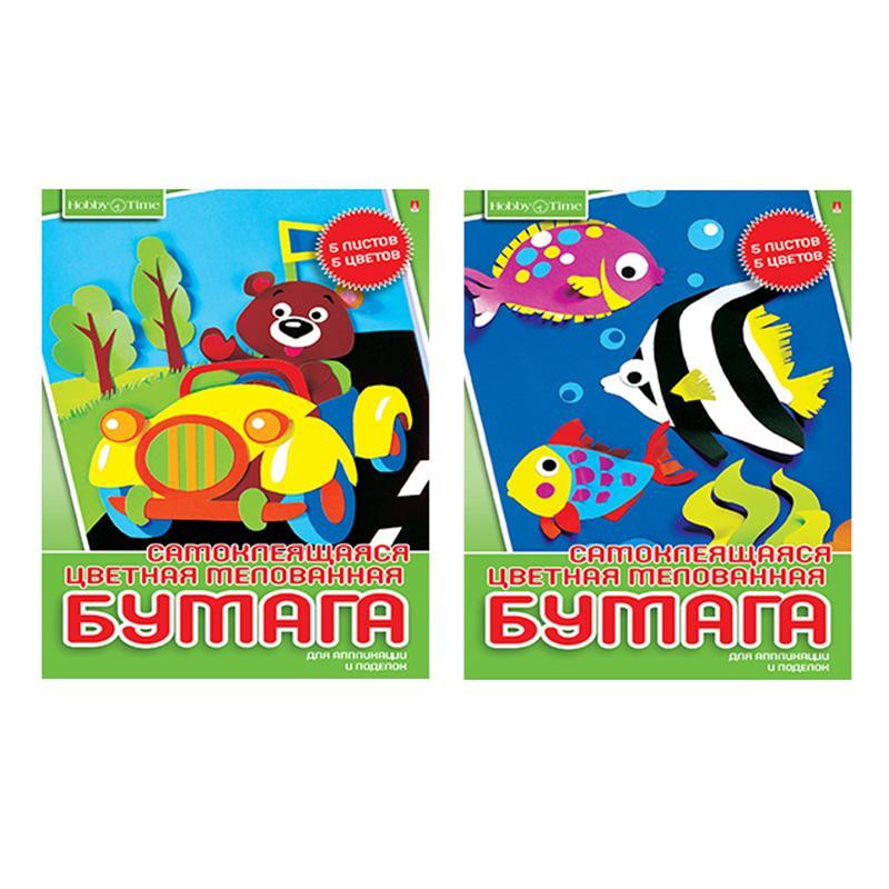 Бумага цветная Альт Hobby Time (А4, 5 листов, 5 цветов, мелованная, самоклеящаяся)