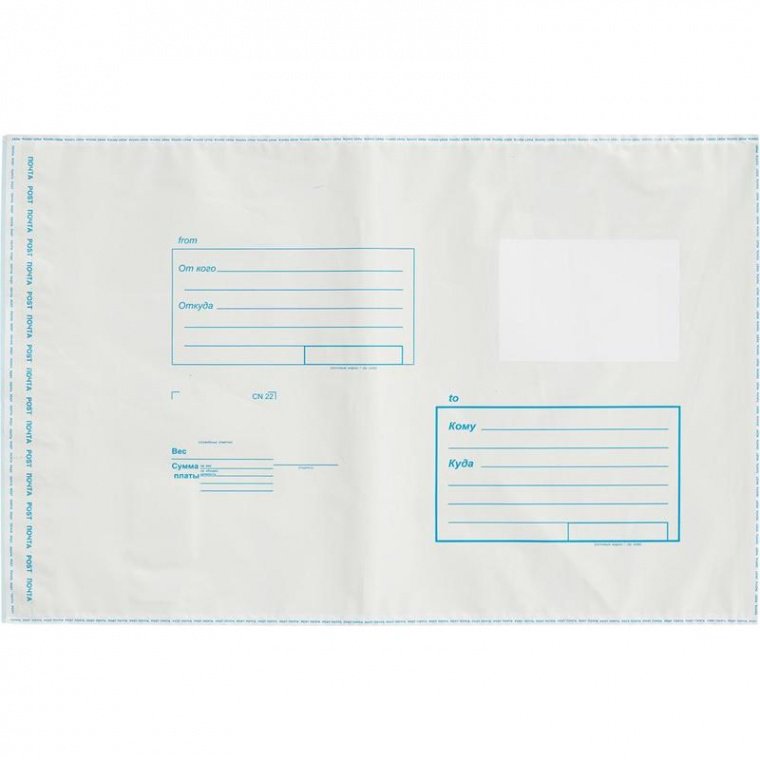 Пакет B4 250×353 мм изготовлен из трехслойного непрозрачного полиэтилена, имеет почтовый подсказ ’Куда-Кому’ и снабжен отрывной клейкой лентой. Толщина 70 микрон Преимущества: — многослойный полиэтилен высокой прочности защищает вложение от влаги и механических повреждений; — непрозрачность материала исключает возможность определить содержание вложения; — возможность нанесения информации шариковой ручкой; — поверхности определенных зон пакета обеспечивают качество наносимых текстов, оттисков штемпелей и штампов и не допускают их стирания в процессе обработки и транспортировки; — индикаторы, выявляющие любую попытку несанкционированного вскрытия, в т.ч. прочный специальный шов с нанесенным микротекстом и специальные линии просечек с защитным текстом на клапане. Пакет предназначен для упаковки всех видов почтовых отправлений (писем, бандеролей, мелких посылок) — простых, заказных, с объявленной ценностью — с разрешенным весом вложения до 7 кг. Использование почтовых пакетов из 3-слойного полиэтилена значительно сокращает время упаковки. Упакован в короба 500 штук, обандеролен по 50 штук. Срок хранения не ограничен.