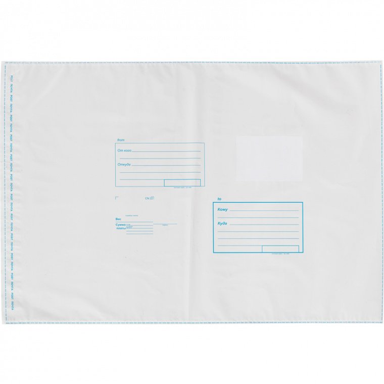Пакет 360×500 мм изготовлен из трехслойного непрозрачного полиэтилена, имеет почтовый подсказ ’Куда-Кому’ и снабжен отрывной клейкой лентой. Толщина 70 микрон Преимущества: — многослойный полиэтилен высокой прочности защищает вложение от влаги и механических повреждений; — непрозрачность материала исключает возможность определить содержание вложения; — возможность нанесения информации шариковой ручкой; — поверхности определенных зон пакета обеспечивают качество наносимых текстов, оттисков штемпелей и штампов и не допускают их стирания в процессе обработки и транспортировки; — индикаторы, выявляющие любую попытку несанкционированного вскрытия, в т.ч. прочный специальный шов с нанесенным микротекстом и специальные линии просечек с защитным текстом на клапане. Пакет предназначен для упаковки всех видов почтовых отправлений (писем, бандеролей, мелких посылок) — простых, заказных, с объявленной ценностью — с разрешенным весом вложения до 7 кг. Использование почтовых пакетов из 3-слойного полиэтилена значительно сокращает время упаковки. Упакован в короба 250 штук, обандеролен по 50 штук. Срок хранения не ограничен.
