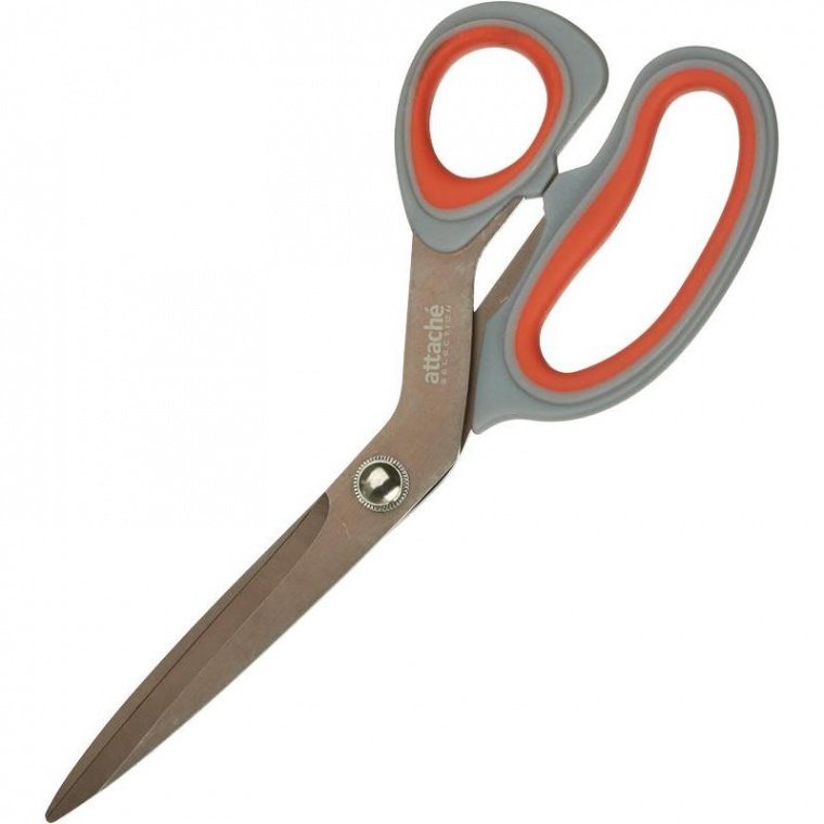 Ножницы Attache selection Energy, покрытие Titanium coffe. Изготовлены из высококачественной нержавеющей стали, толщина стали 3 мм. Эргономичные ручки. Цвет ручек — серый с оранжевым, длина 220 мм. Трехсторонняя заточка лезвий.