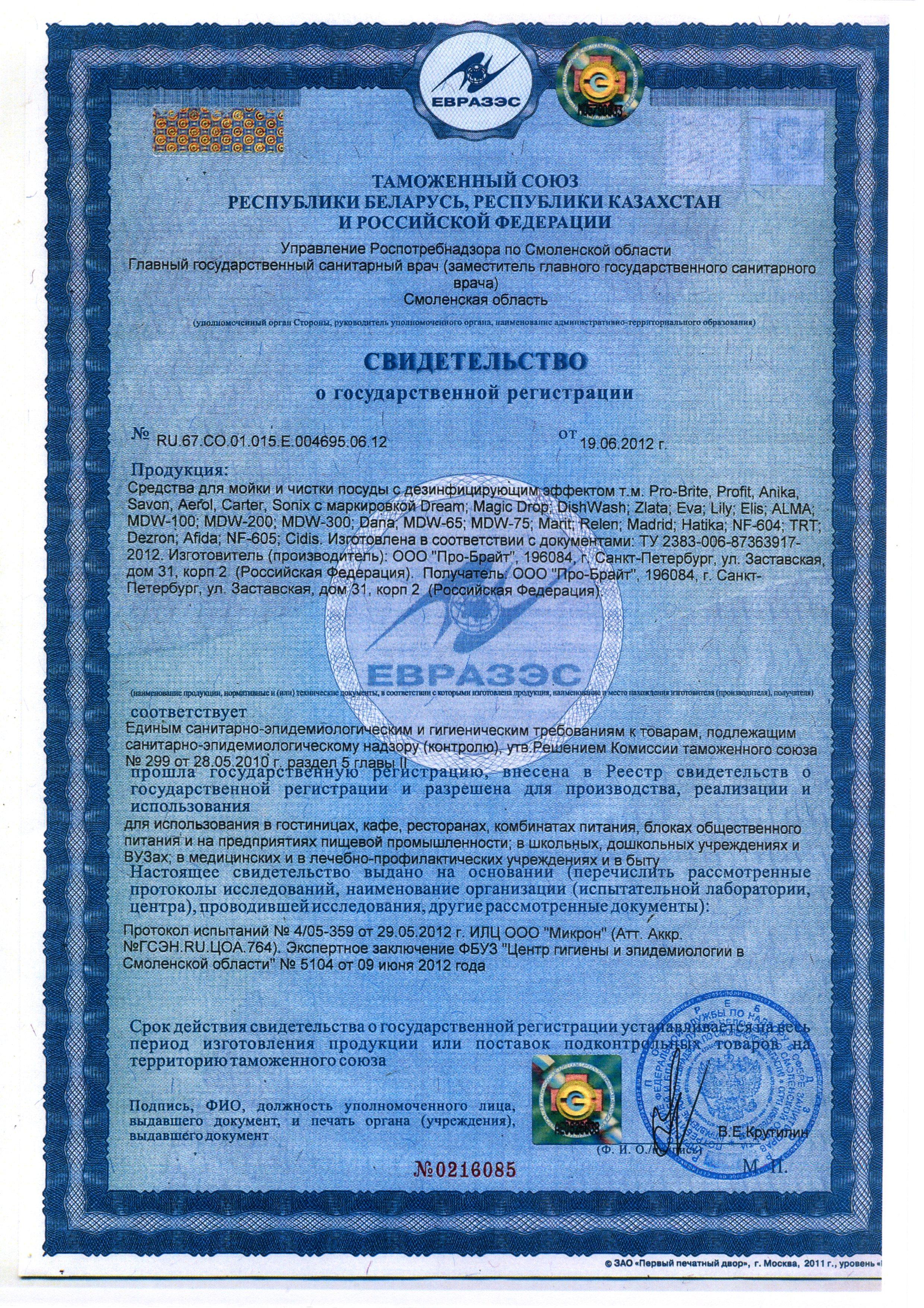 Свойства: жидкий пенный концентрат с лёгким ароматом против жировых, белковых и др. пищевых загрязнений на стекле и хрустале, керамике, пластиках, нержавеющей стали, алюминии и цветных металлах, камне, деревянных и окрашенных поверхностях. Наличие комплексона в составе обеспечивает эффективность в воде любой жёсткости, а также в холодной воде. Образует мелкоячеистую стойкую пену, благодаря тензидам нового поколения легко отделяет загрязнения от поверхности. Хорошо смывается. Придаёт блеск стеклу. Не содержит фосфатов и фосфонатов, а также щелочей и др. агрессивных веществ. Замерзает, после размораживания возможно расслоение, свойства сохраняются.