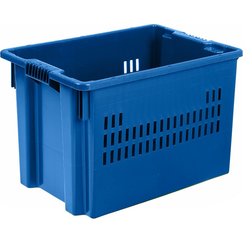Ящик (лоток) универсальный вкладываемый и штабелируемый, изготовлен из полиэтилена низкого давления синий. Благодаря физико-химическим свойствам ПНД такие ящики легкие, прочные, морозостойкие (в пределах допустимых температур); при этом они не поддаются воздействиям микроорганизмов и химически активных веществ. Тара из ПНД безопасна для использования в пищевой промышленности. Предназначен для эффективного хранения, обработки и транспортировки продукции различного назначения. Данная модель рекомендована для склада. Внешний размер: 600x400x400 мм, внутренний размер: 505x365x395 мм. Объем: 75 л. Вес: 2,9 кг. Ящик вкладываемый и штабелируемый, с перфорированными боковыми стенками и сплошным дном. Использование штабелируемой тары существенно оптимизирует логистику, а вкладываемая пустая тара не занимает много места на складе. Пластиковые ящики могут устойчиво штабелироваться с крышкой или без крышки. Удобные ручки позволяют легко перемещать ударопрочные пластиковые ящики с места на место.