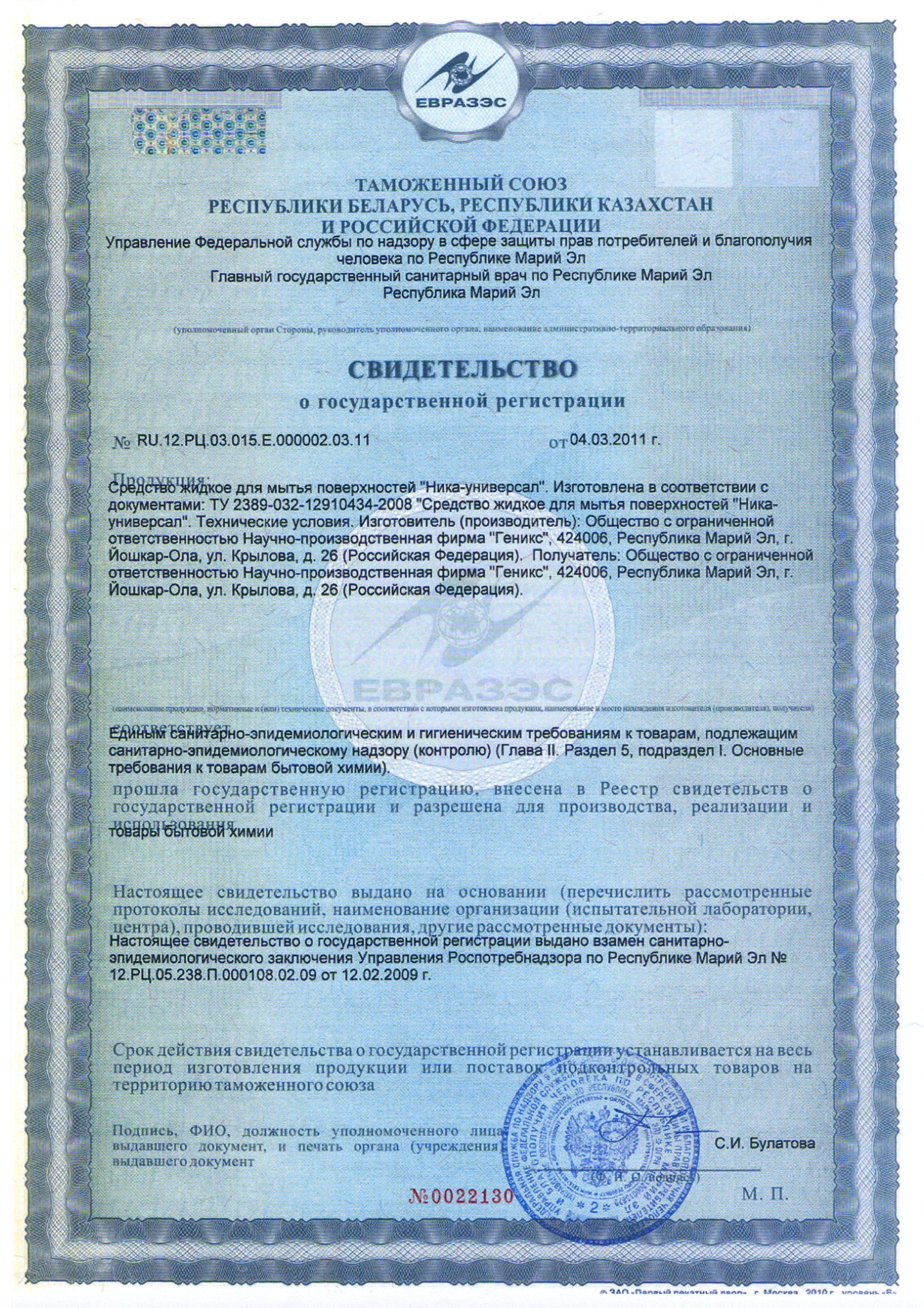 Средство жидкое для мытья поверхностей «Ника-Универсал»