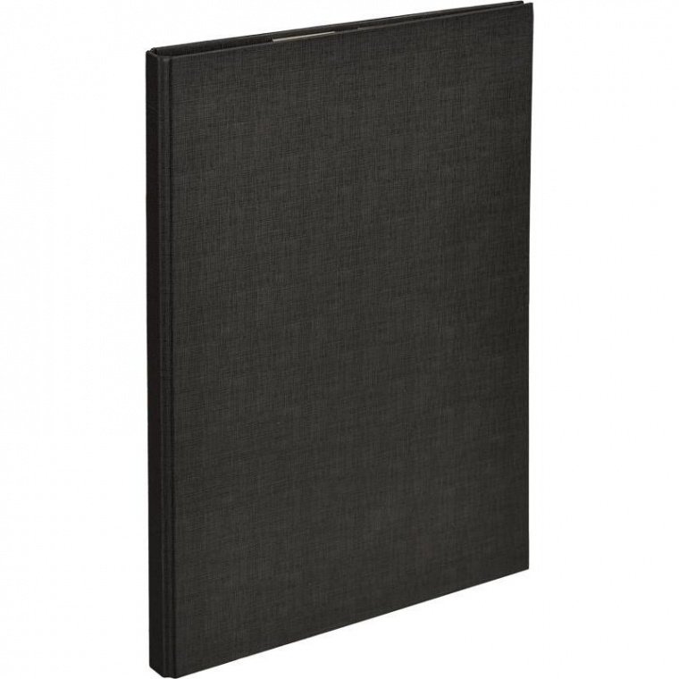 Папка-планшет формата А4 (227,5×314 мм) изготовлена из плотного картона, сверху покрыт ПВХ черного цвета. Позволяет комфортно работать с документами на весу. Металлический прижим надежно удерживает листы и файлы. Вместимость до 100 листов. С крышкой.