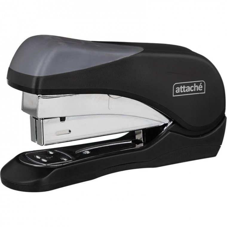 Степлер средний Attache Expert до 20 листов с функцией ’Экономия усилий 50%’. Противоскользящая прорезиненная вставка, цвет черный с серой вставкой. Металлический механизм. Полноразмерный Степлер средний. Используемые скобы: № 24/6 — 100 штук, 26/6 — 150 штук. Глубина закладки бумаги 60 мм. Вид сшивания: закрытый и открытый. Размер изделия: 139×83×43 мм.