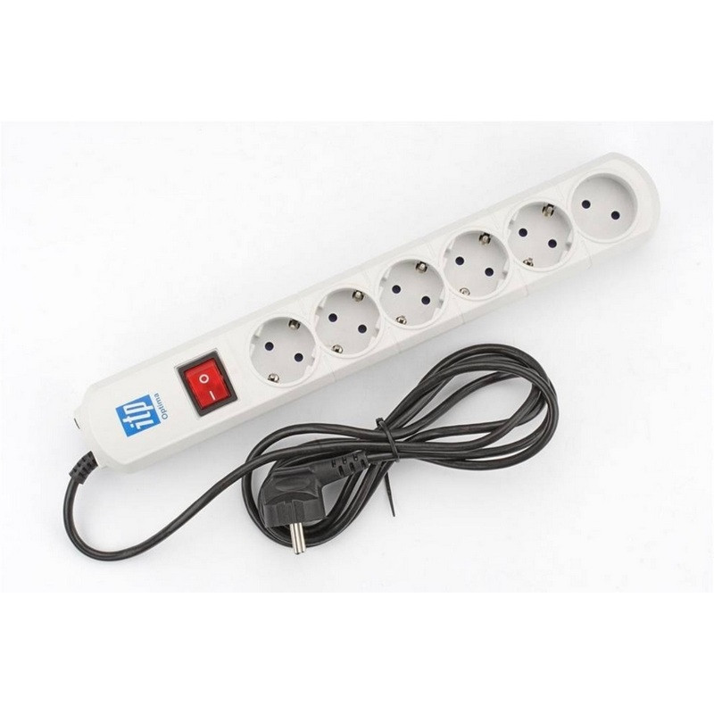 6 розеток. Длина шнура 5 м. Варисторный блок + симметричный дроссель + блок конденсаторов. Защита от перепадов напряжения, КЗ, наводок, пиковых бросков токов, ВЧ и импульсных помех. Оптимальное решение