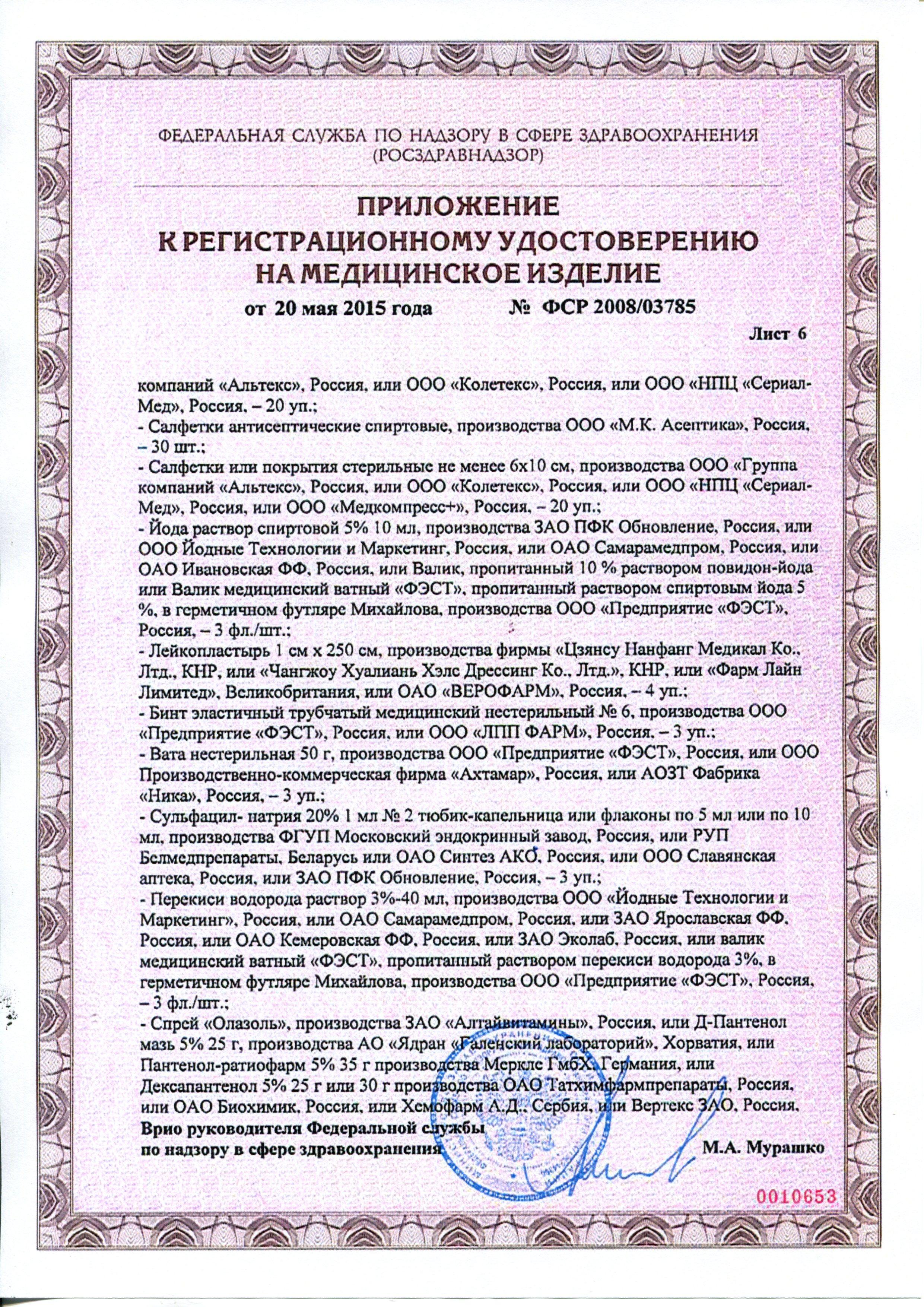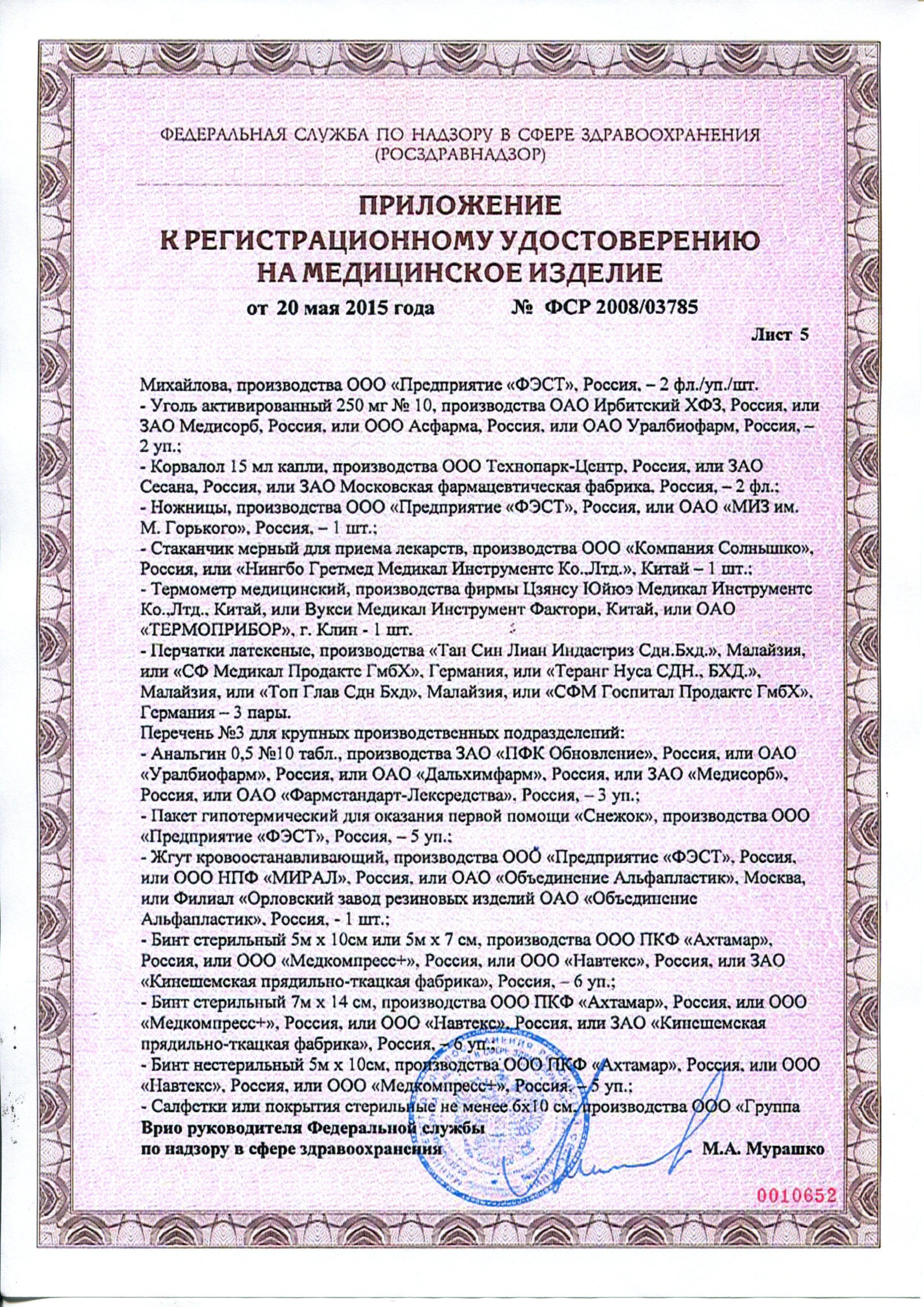 5. Проверьте, чтобы лекарства в аптечке соответствовали типовым травмам рода деятельности предприятия.