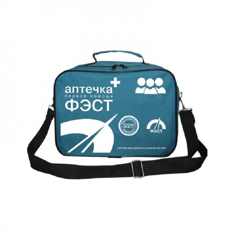 Аптечка первой помощи коллективная ФЭСТ. Аптечка рассчитана на коллектив работников до 100 человек. Аптечка изготавливается в соответствии с ТУ производителя. ТУ 9398-058-10973749-2008 Аптечка первой помощи коллективная используется в том случае, если есть необходимость обеспечить комплексную первую медицинскую помощь при возможных травмах и различных недомоганиях на рабочем месте. Футляр мягкий (переносная сумка) — 285×230×145 мм Футляр выполнен из прочной синтетической ткани ПВХ. Конструкции сумок обеспечивают удобство размещения, хранения и эксплуатации медицинского имущества, усилены в местах максимальной нагрузки. Устойчивы к обработке и рассчитаны на долгий срок эксплуатации. № Состав: