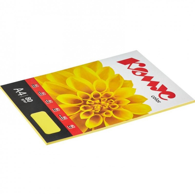 Бумага цветная для офисной техники Комус Color лимон интенсив (А4, 80 г/кв.м, 50 листов)