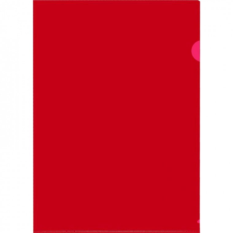 Папка-уголок формата А4 изготовлена из прозрачного полипропилена плотностью 180 мкм, красного цвета. 10 штук в упаковке. Вмещает до 40 листов. Позволяет удобно хранить и переносить документы, предотвращает их смятие и загрязнение. Папка имеет выемку для удобного извлечения листов.