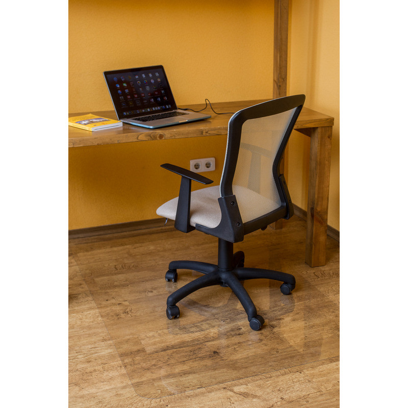 Прямоугольный коврик размером 100х120 см изготовлен из прозрачного поликарбоната толщиной 1.5 мм. Служит для защиты пола в местах, которые подвержены загрязнению и износу. Подходит для паркета, линолеума, ламината, керамической плитки, гранита. Обладает противоскользящими свойствами. Износостойкий, экологичный, не желтеет со временем.