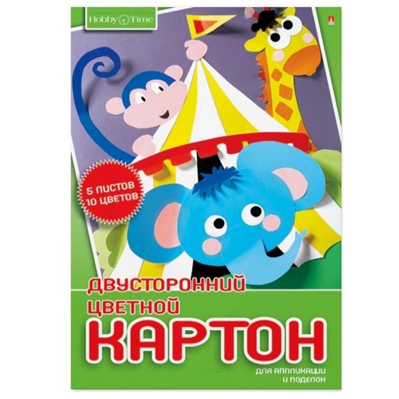 Картон цветной Альт (А4, 5 листов, 10 цветов, мелованный, двусторонний)