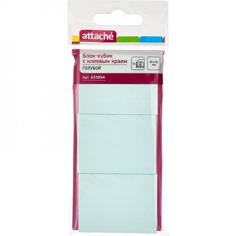 Стикеры Attache в формате 38×51 мм, голубого цвета, состоят из 100 листов в каждом блоке (всего 300 листов). Идеально подойдут для сотрудников творческих профессий и руководителей: рекомедуется для использования в процессе совещаний, обучения, мозговых штурмов. Тон стикеров — пастельный. Плотность бумаги составляет 62 г/кв.м, клейкий слой — 22 Н/м. В упаковке 3 блокнота по 100 листов. После удаления бумаги на поверхности не остается следов клеевого состава, лист можно крепить повторно. Длина клейкой стороны 51 мм.