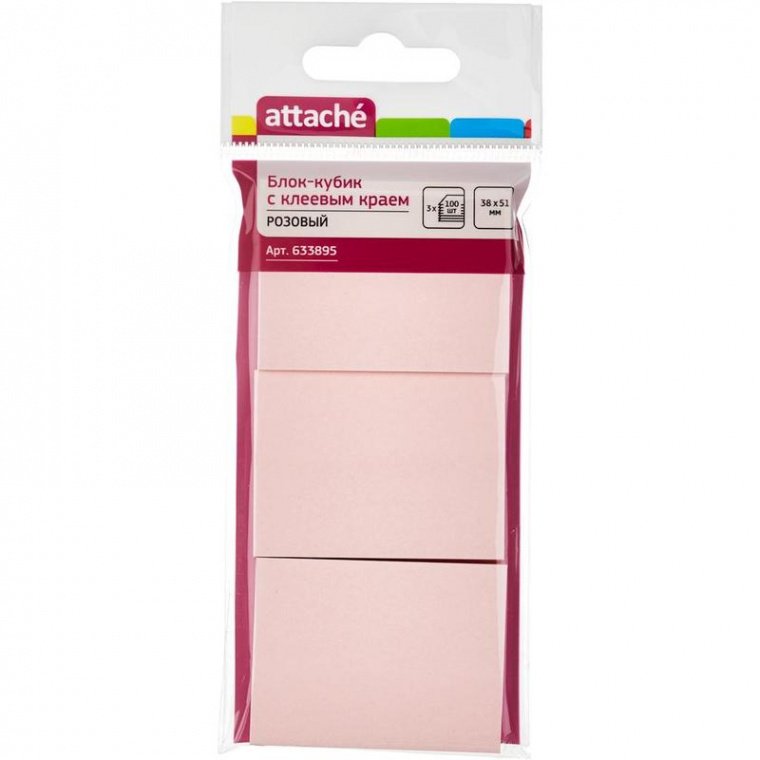 Стикеры Attache в формате 38×51 мм, розового цвета, состоят из 100 листов в каждом блоке (всего 300 листов). Идеально подойдут для сотрудников творческих профессий и руководителей: рекомедуется для использования в процессе совещаний, обучения, мозговых штурмов. Тон стикеров — пастельный. Плотность бумаги составляет 62 г/кв.м, клейкий слой — 22 Н/м. В упаковке 3 блокнота по 100 листов. После удаления бумаги на поверхности не остается следов клеевого состава, лист можно крепить повторно. Длина клейкой стороны 51 мм.