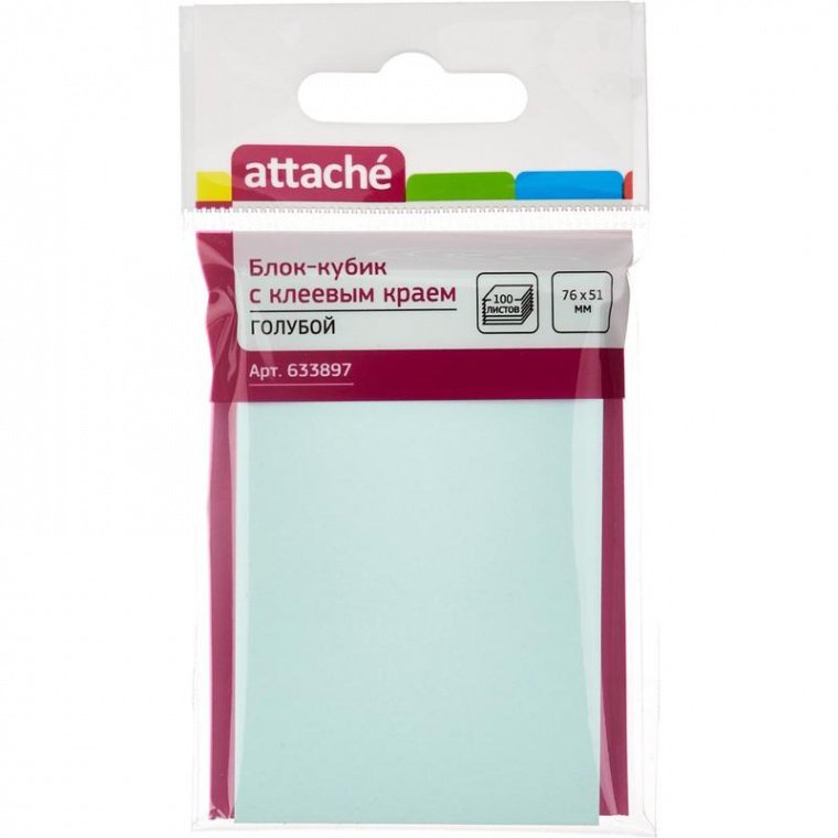 Стикеры Attache в формате 76×51 мм, голубого цвета, состоят из 100 листов. Идеально подойдут для сотрудников творческих профессий и руководителей: рекомедуется для использования в процессе совещаний, обучения, мозговых штурмов. Тон стикеров — пастельный. Плотность бумаги составляет 62 г/кв.м, клейкий слой — 22 Н/м. После удаления стикера на поверхности не остается следов клеевого состава, лист можно крепить повторно. Длина клейкой стороны составляет 51 мм.