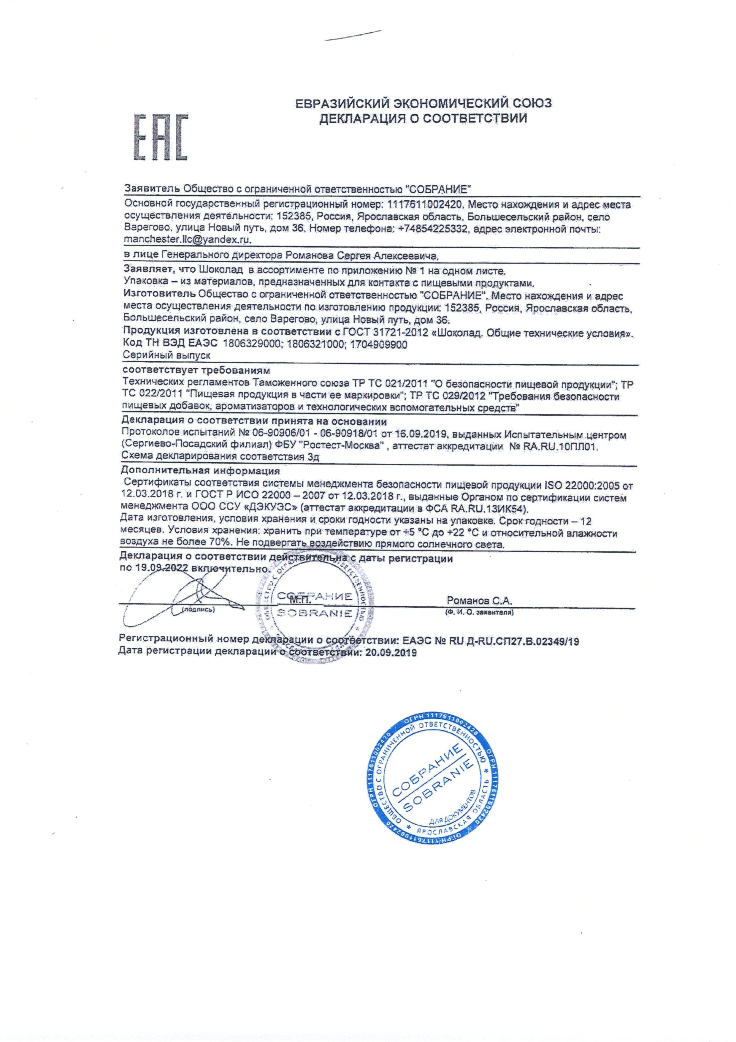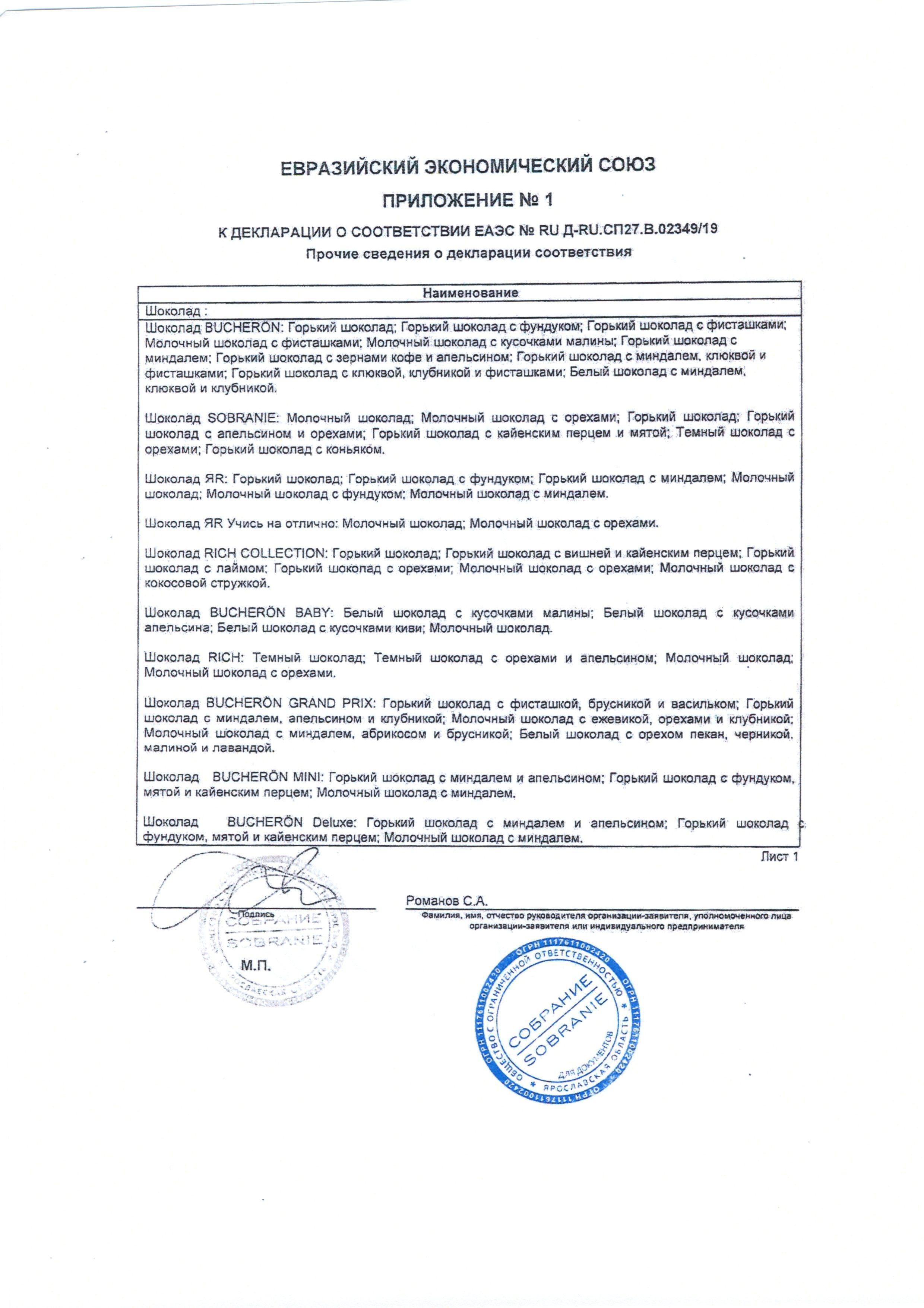 Сертификат на товар - Шоколад Bucheron горький шоколад 100 г