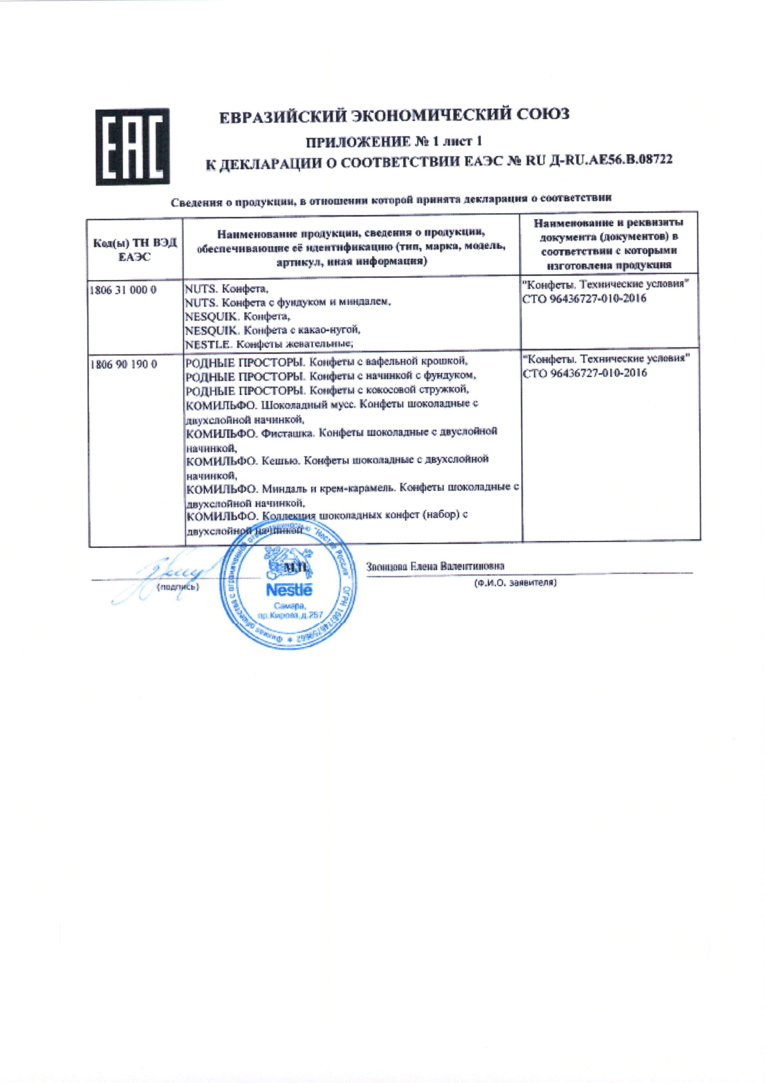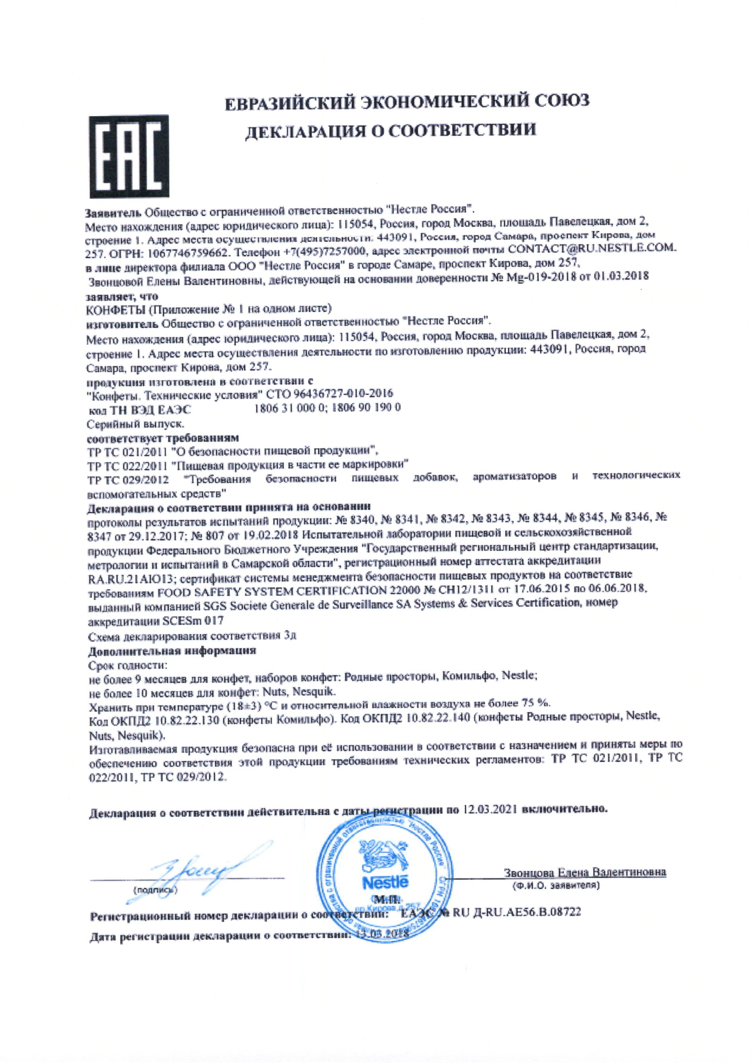 Сертификат на товар - Шоколадные конфеты Родные просторы с вафельной крошкой 125 г