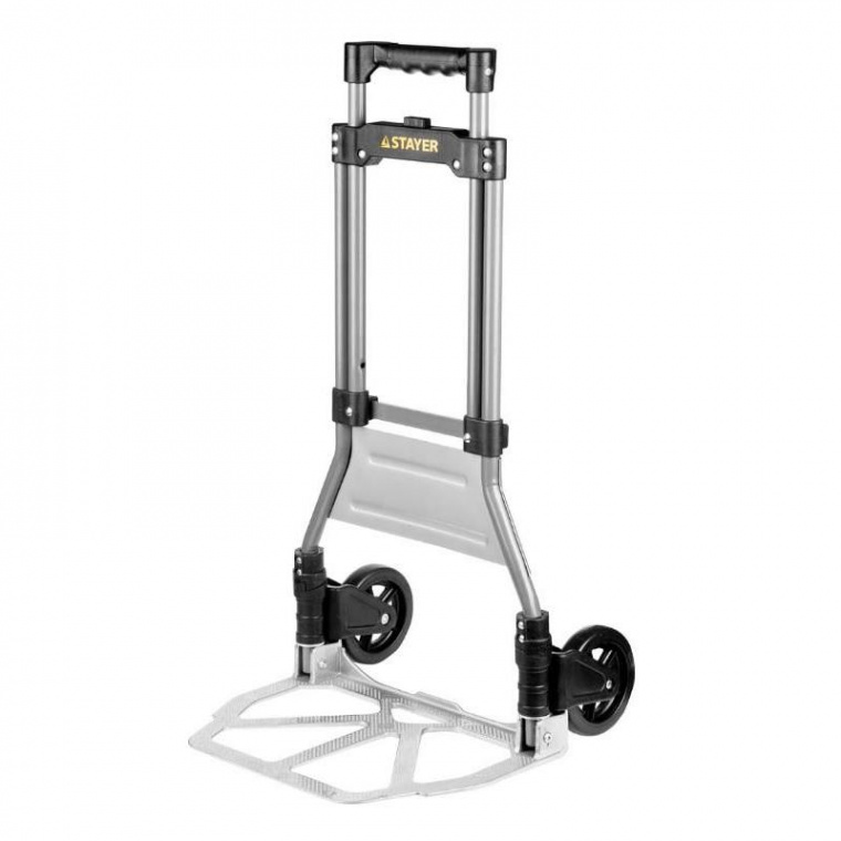 Хозяйственная раскладная тележка STAYER EXPERT максимальная нагрузка 90кг 38755-90 обладает жесткой рамной конструкцией, выполненной из стали. Два колеса большого диаметра способствуют легкой транспортировке груза без значительных усилий оператора. Рукоятка тележки регулируется по высоте и имеет широкую поверхность хвата (при этом повторяет форму пальцев). Встроенный механизм быстро складывает и раскладывает основание тележки. Оборудование исключительно просто в использовании — им может пользоваться как профессионал, так и любитель.