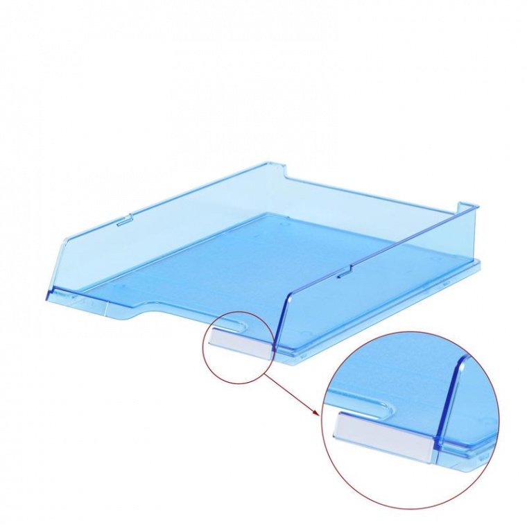 Горизонтальный лоток для бумаг Han изготовлен из ударопрочного матового антистатического пластика. Предназначен для хранения и сортировки документов и печатной продукции формата А4-С4. Имеется прозрачное съемное индексное окно. Специальная конструкция лотка, позволяет соединять их в единую жёсткую конструкцию(штапелировать). Толщина пластика: 1.8 мм. Цвет: прозрачный,синий. Размеры: 254×346×65 мм.