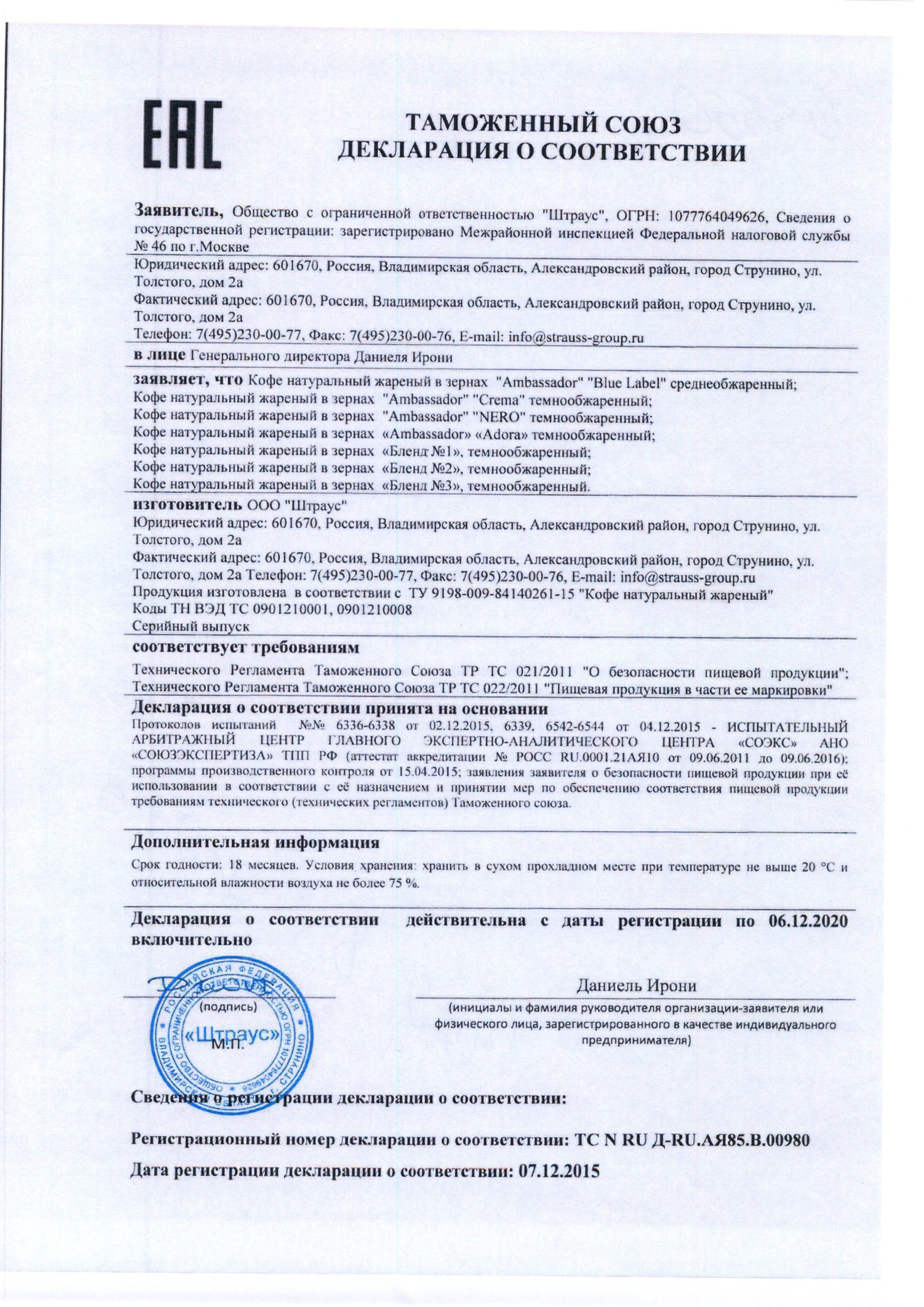 Кофе в зернах Ambassador Blue Label 100% арабика подарит вам возможность насладиться качественным эспрессо, американо. Он прекрасно сочетается с топпингами, молочными продуктами, ликером и карамелью. Станет надежным помощником активного образа жизни, нелегких рабочих будней с плотным графиком и важных встреч. Вакуумный пакет потрясающего синего цвета невозможно обойти вниманием, он украсит вашу кофейную полку и прекрасно сохранит все свойства каждого зернышка. Позвольте себе чашечку крепкого напитка, приготовленного профессиональным баристой или верной кофемашиной. Оба варианта будут достойного качества. Также вы можете сварить свои идеальный кофе в кофеварке или турке. Ambassador — кофе, о вкусе которого ходят легенды.
