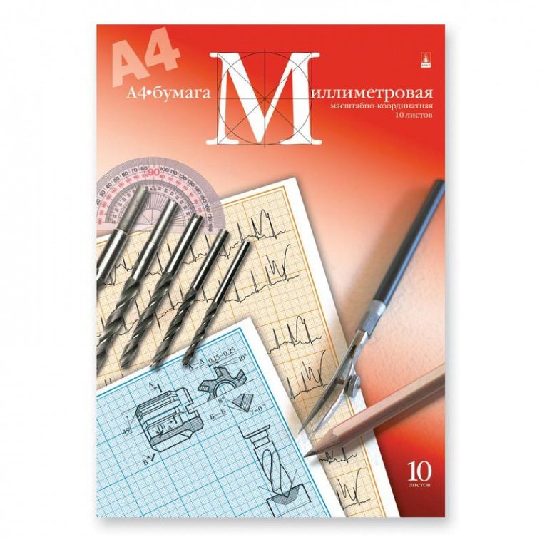 Миллиметровая бумага голубого цвета, предназначенная для нанесения чертежей и технических изображений вручную карандашом, линером, рапидографом, характеризуется плотностью 80 г/кв.м, благодаря чему устраняется просвечивание. Интервал больших линий — 5 см, малых — 1 мм. В папке из мелованного картона содержится 10 листов формата А4.