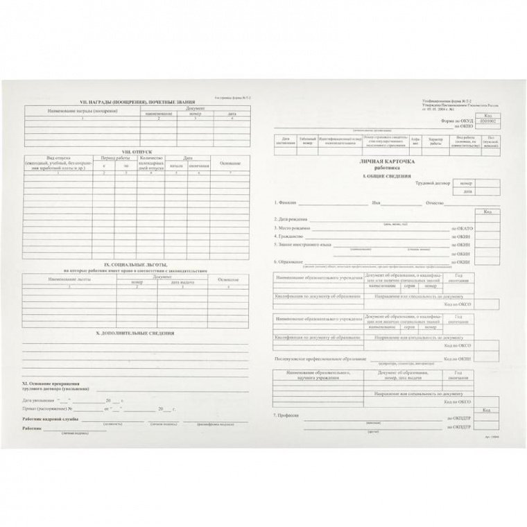 форма Т-2. Заполняются работниками кадровых служб (отделов персонала)