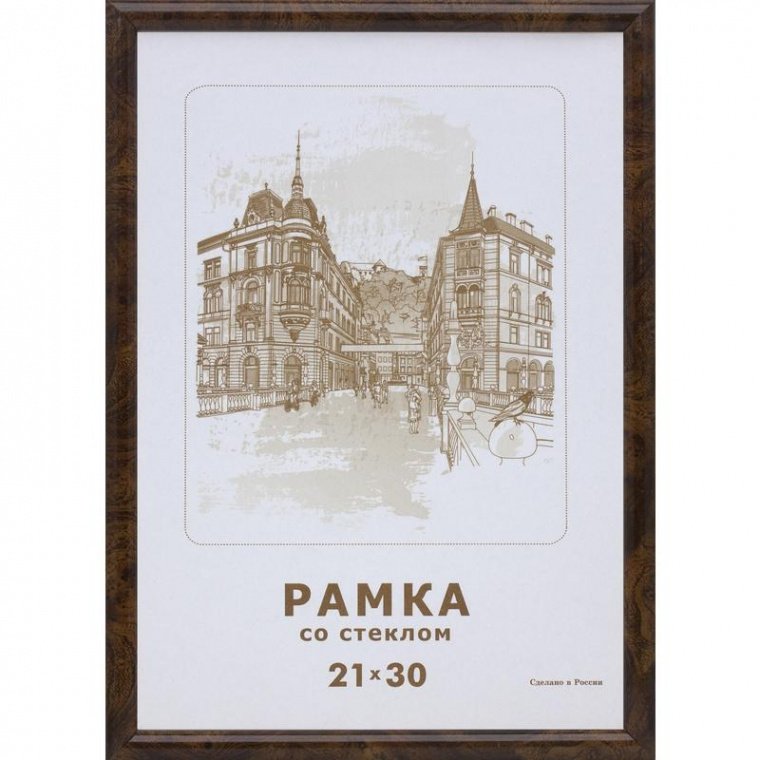Материал багета: пластик. Материал вставки: стекло. Материал задника: картон. Толщина багета: 14 мм. Ширина багета: 14 мм. Цвет багета: коричневый. Вставка съемная. Тип размещения: настенный. Тип крепления задника: лепестки. Размер фото: 21×30 см. Размер изделия: 23×32 см. Упаковка: пленка.