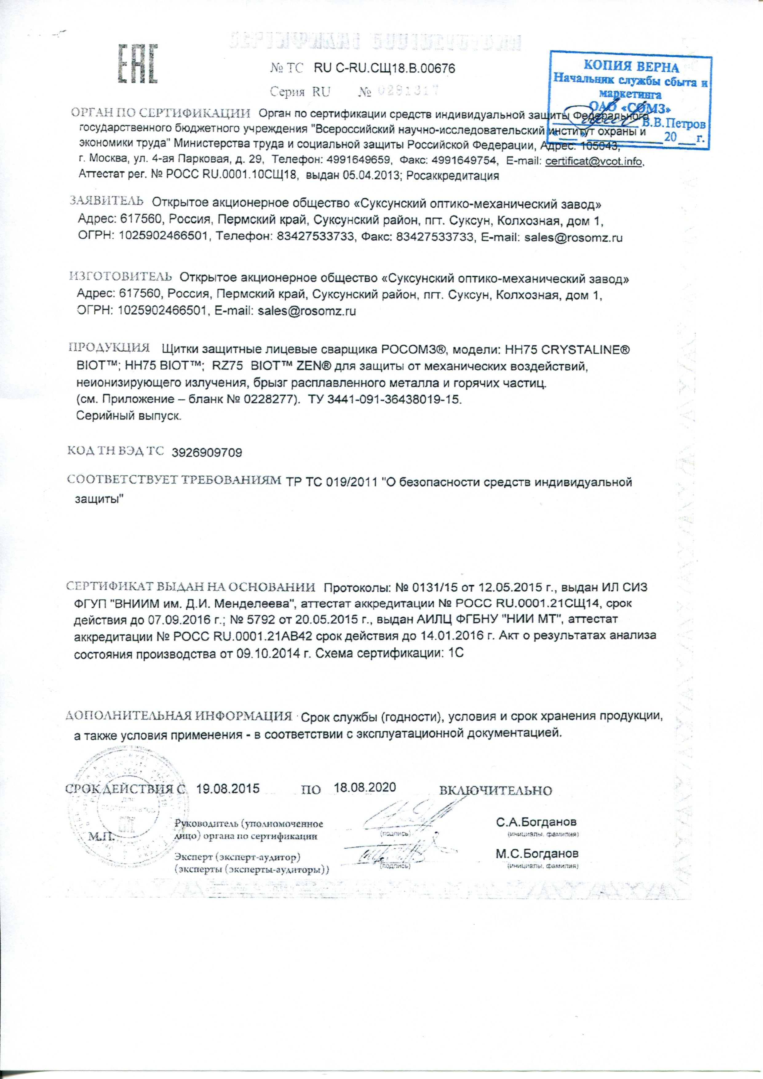 Маска сварщика РОСОМЗ RZ75 Biot Zen изготовлена из материала Termotrek, прочного, термостойкого, устойчивого к высоким и низким температурам, искрам и брызгам расплавленного металла, УФ и ИК-излучению. Подходит для интенсивной промышленной сварки, в крайне тяжелых производственных условиях, в диапазоне температур от -40°С до +80°. Щиток имеет обтекаемую форму, за счет которой искры и брызги скатываются со щитка как по трамплину, а также на шейный отдел позвоночника идет минимальная нагрузка.