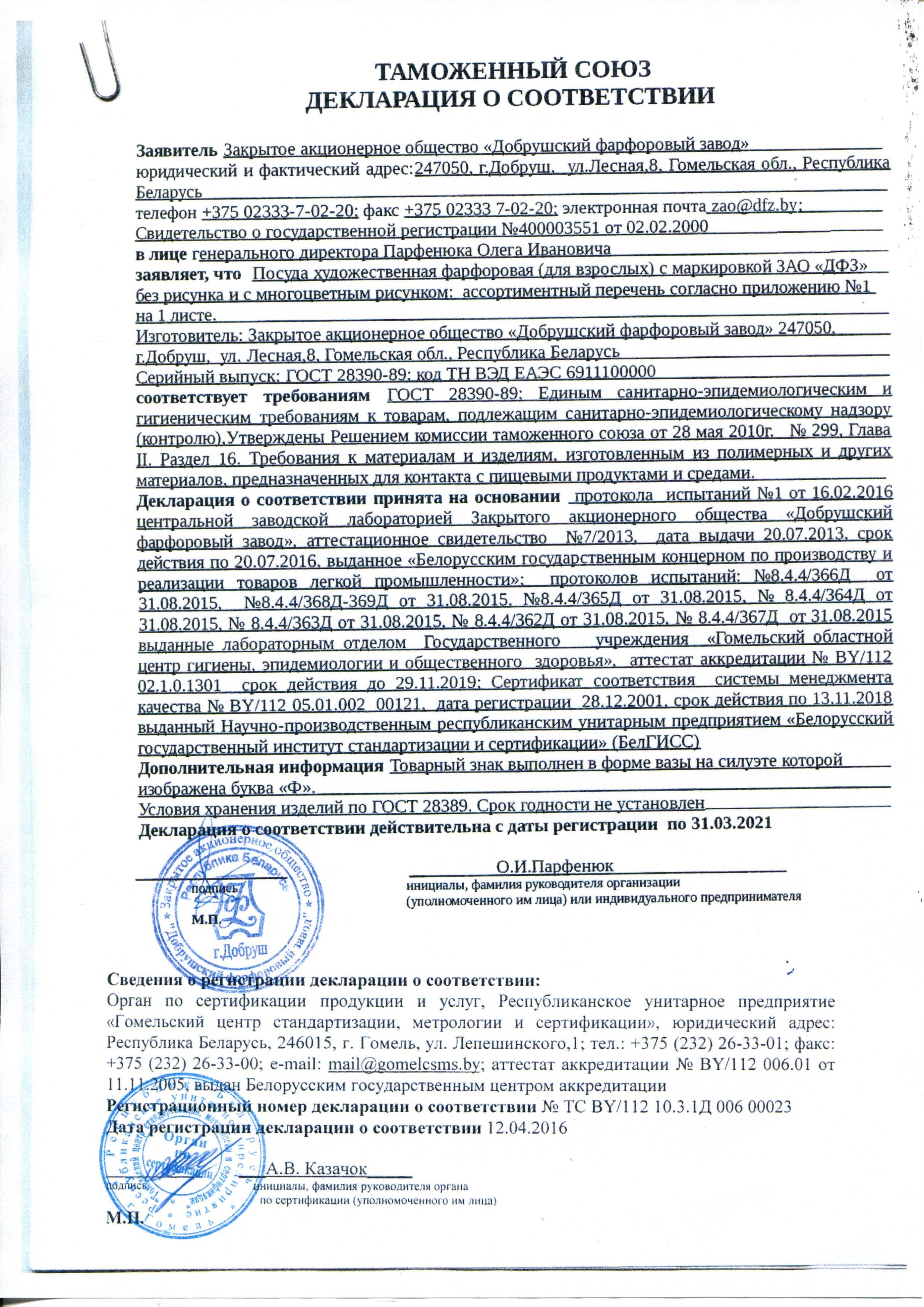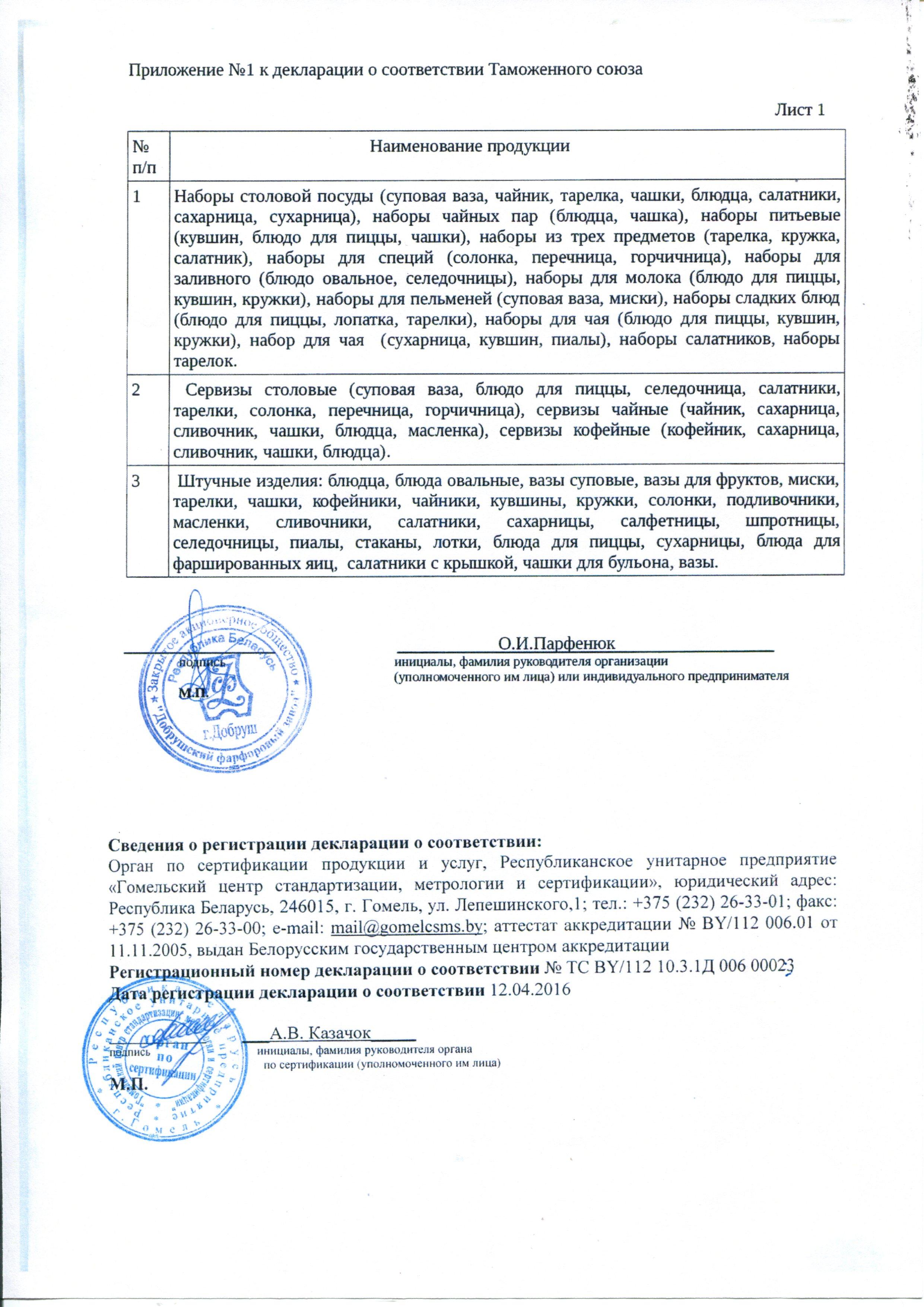 Сертификат на товар - Миска Добруш фарфоровая белая 550 мл (артикул производителя 4С0291Ф34)