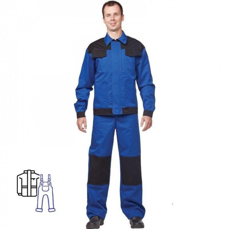 Костюм из антистатичной ткани включает куртку и полукомбинезон, предназначен для сотрудников, работающих в условиях возникновения разряда статического электричества.