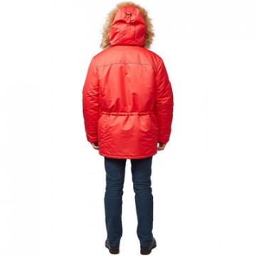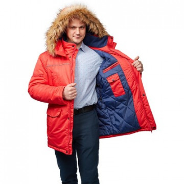 Спецодежда зимняя куртка мужская з28-КУ (размер 52-54, рост 170-176) красного цвета. Изготовлена из ткани 'Таслан 330' (100% нейлон), плотность ткани - 110 г/кв.м. Утеплитель - холлофан, плотность - 150 г/кв.м (2 слоя). Материал подкладки - 100% полиэстер. Куртка с центральной застежкой на молнию, ветрозащитным клапаном, два нижних накладных и два верхних кармана на кнопках плюс два на молнии, отстегивающаяся меховая опушка на капюшоне. Куртка обеспечивает защиту от пониженных температур и производственных загрязнений. Рекомендована для использования в логистике, легкой промышленности, строительстве. ГОСТ 12. 4. 303-2016. В коллекции зимней спецодежды з28 представлены кутрки-аляски з28-КУ красного, синего и черного цветов. К этим курткам подходят брюки з28-БР из этой же коллекции.