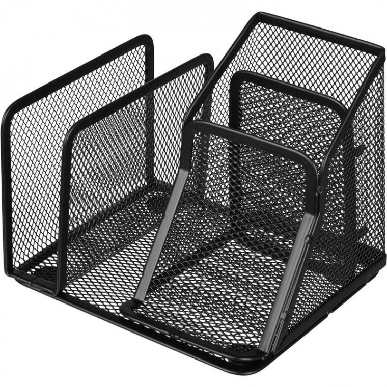 Подставка для письменных принадлежностей и писем Attache (4 секции, металлическая сетка, 145х130х128 мм, черная)