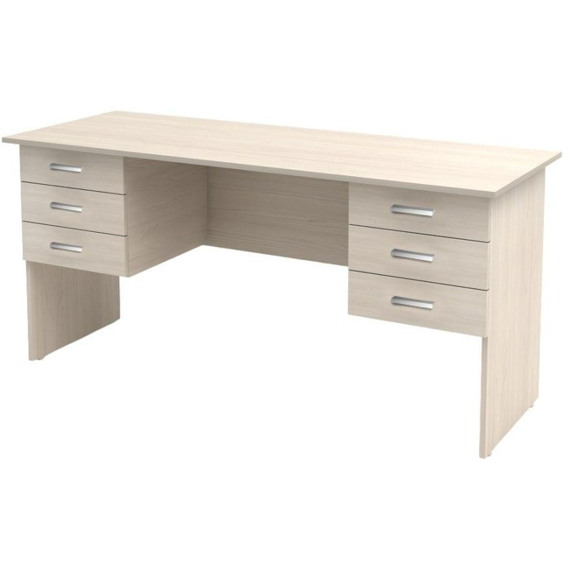 Внимание! Пожалуйста, проверяйте цвет изделия до начала сборки! Цвет на изображении товара в интернет-магазине или в печатном каталоге может отличаться от оригинала из-за особенностей цветопередачи.Стол Канц выполнен из ламинированной деревоплиты (ЛДСП) цвета дуб молочный, кромка отделана ударопрочной лентой ПВХ. С правой и с левой стороны установлены по 3 выдвижных ящика.