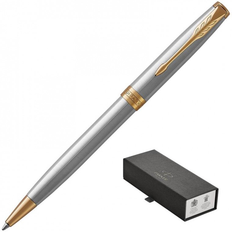 Корпус шариковой ручки Parker Sonnet изготовлен из нержавеющей стали, декоративные элементы покрыты 23-каратной позолотой. Оснащена механизмом поворотного действия. В комплект входит стержень с черной пастой. Толщина линии письма — 0,8 мм. Поставляется в индивидуальном футляре. Sonnet — одна из самых элегантных коллекций, основанная на классическом стиле и умеренных формах. Стальной корпус из нержавеющей стали сбалансированного веса и оптимальной формы. Хромированные детали отделки корпуса.