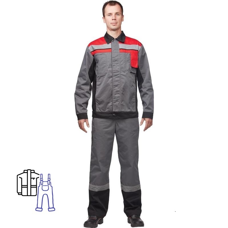 Костюм рабочий летний мужской л19-КПК с СОП серый/красный (размер 60-62, рост 182-188)