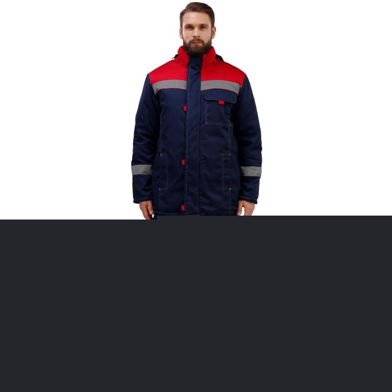 Спецодежда зимняя костюм мужской з31-КПК состоит из куртки и полукомбинезона (размер 52-54, рост 170-176) синего цвета с красными вставками и контрастной отстрочкой. Изготовлен из смесовой ткани (35% хлопок, 65% полиэстер), плотность ткани - 220 г/кв.м. Утеплитель - синтепон, плотность утеплителя куртки - 200 г/кв.м (2 слоя), полукомбинезона - 200 г/кв.м (1 слой). Материал подкладки - 100% полиэстер. Светоотражающая полоса размещена на груди, спине, рукавах, а также внизу полукомбинезона. Куртка с центральной застежкой на молнию, ветрозащитным клапаном, съемным капюшоном, имеет два нижних внутренних кармана и один верхний накладной, трикотажные напульсники. Полукомбинезон классического покроя с центральной молнией, с двумя нижними накладными карманами. Костюм обеспечивает защиту от пониженных температур и производственных загрязнений. ГОСТ 12. 4. 303-2016. Имеется заключение Минпромторга, с которым можно вернуть до 20% компенсации от расходов на обязательное социальное страхование от несчастных случаев на производстве и профессиональных заболеваний.Костюмы, состоящие из куртки и полукомбинезона, из коллекции зимней спецодежды з31 представлены в нескольких цветовых сочетаниях: серый с контрастной отделкой красного цвета и синий, с аналогичной красной отделкой.