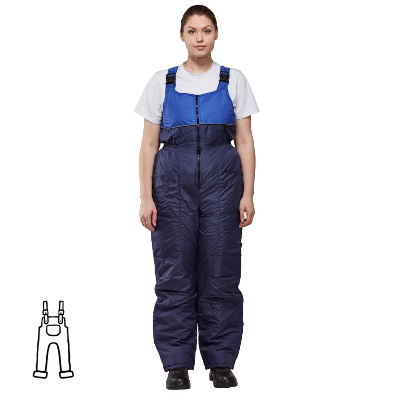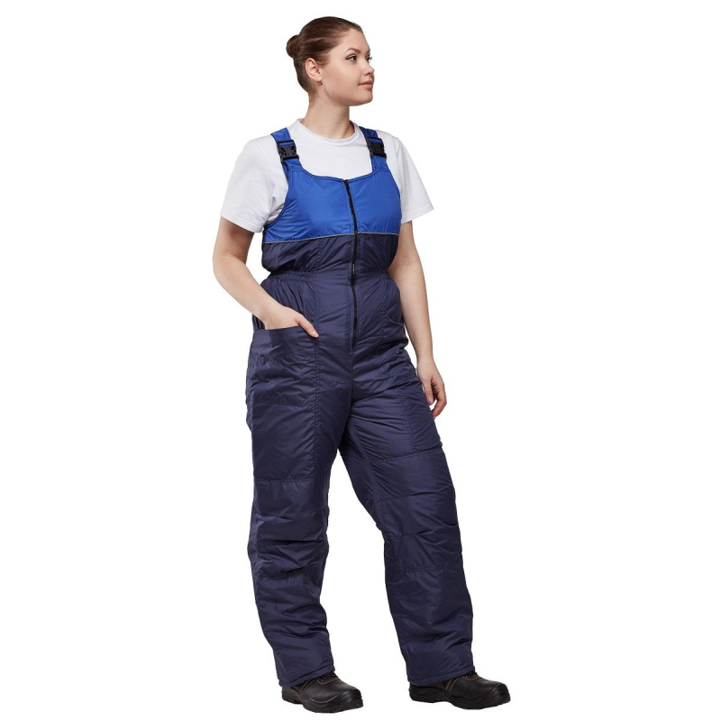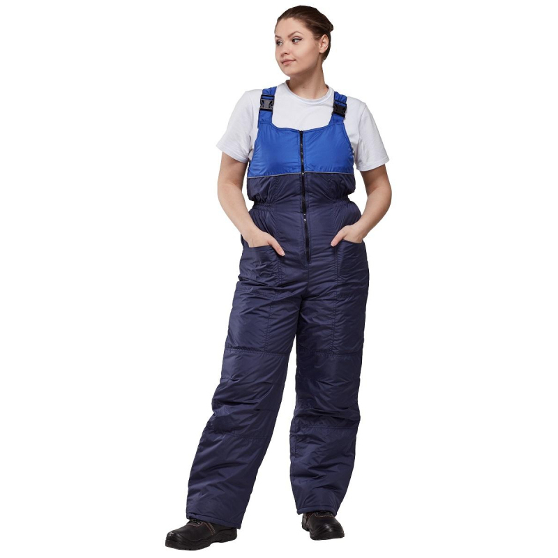 Спецодежда зимняя полукомбинезон женский з07-КПК (размер 52-54, рост 170-176) синего цвета с васильковыми вставками. Изготовлен из смесовой ткани с водоотталкивающей пропиткой (32% хлопок, 68% полиэстер), плотность ткани - 210 г/кв.м. Утеплитель - синтепон, плотность утеплителя - 200 г/кв.м (1 слой). Материал подкладки - 100% полиэстер. Сверху втачан светоотражающий кант. Полукомбинезон классического покроя с двумя нижними накладными карманами. Обеспечивает защиту от пониженных температур и производственных загрязнений. Рекомендован для использования в сельском хозяйстве, логистике, легкой промышленности, строительстве. ГОСТ 12. 4. 303-2016. Имеется заключение Минпромторга, с которым можно вернуть до 20% компенсации от расходов на обязательное социальное страхование от несчастных случаев на производстве и профессиональных заболеваний. Коллекция зимней спецодежды з07 выпускается из нескольких видов ткани: смесовая и дюспо. К полукомбинезонам з07-ПК из смесовой ткани подходят куртки з07-КУ из этого же материала. Также вместо полукомбинезонов можно подобрать брюки з07-БР.
