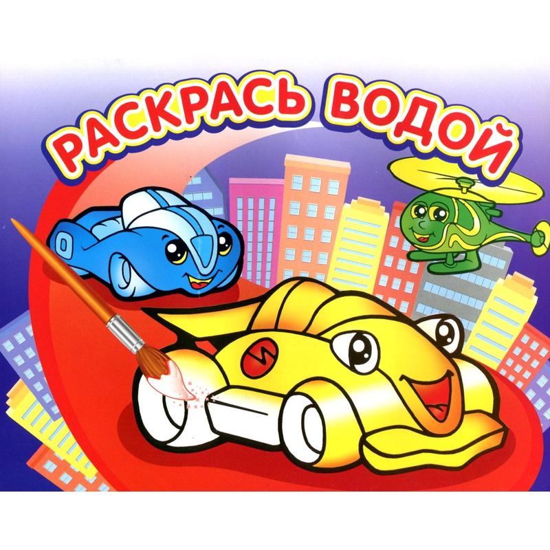 Раскраска водная Гонки. На одной стороне листа раскраски расположены картинки для раскрашивания водой. Формат - 250x200 мм.