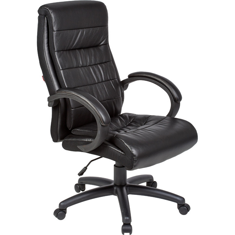 Кресло для руководителя Easy Chair 648 TPU. Обивка спинки и сиденья выполнена из высококачественной искусственной кожи черного цвета. Крестовина и подлокотники кресла изготовлены из черного пластика. Подлокотники оснащены мягкими накладками в цвет обивки. Кресло оснащено механизмом качания Top Gun с фиксацией в рабочем положении и регулировкой по высоте. Максимальная статическая нагрузка на кресло - 100 кг.Изображения товаров на сайте не могут гарантировать точную цветопередачу.